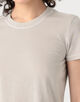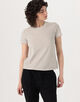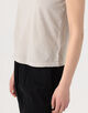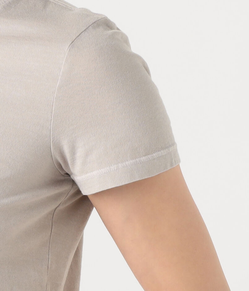 着心地の良いライトウェイトな素材感と襟ぐりの絶妙なあき具合が魅力。