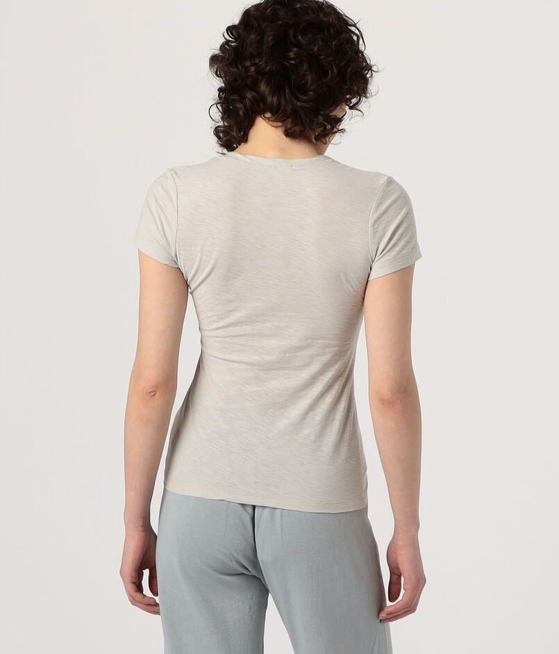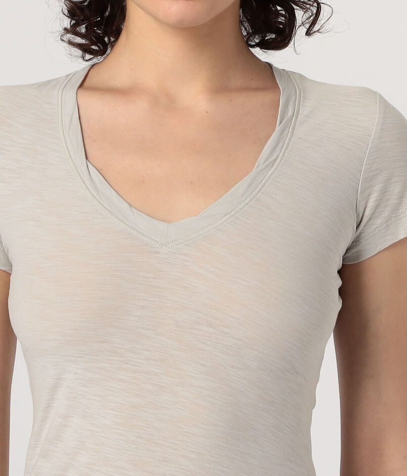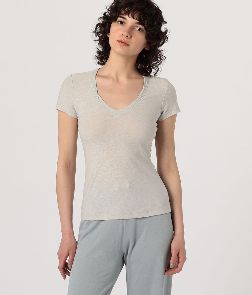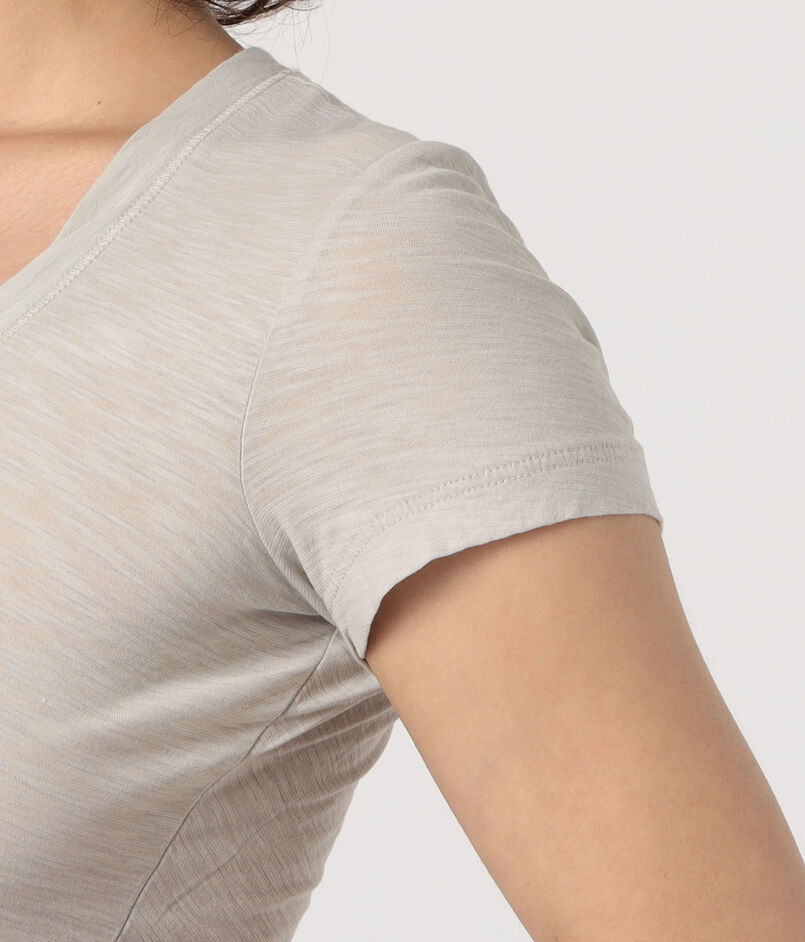 スラブ糸ならではの清涼感のある表情が人気のVネックTシャツ。