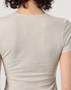 着心地の良い伸縮性に富んだコットン素材と、襟ぐりの絶妙なあき具合が魅力です。