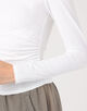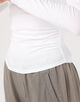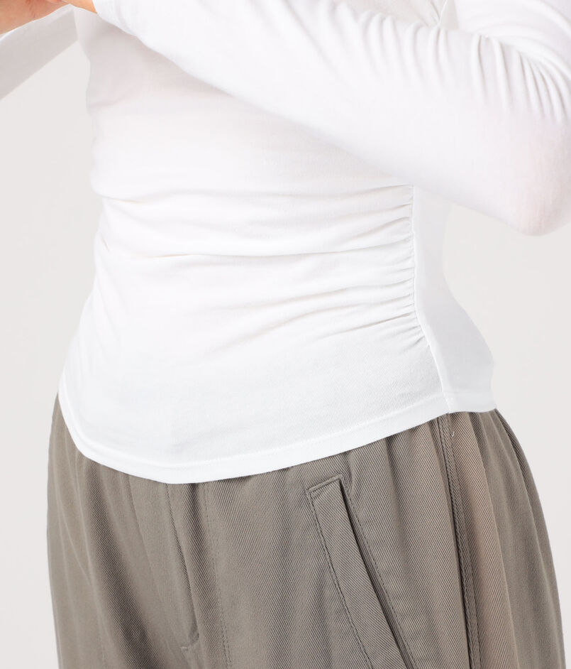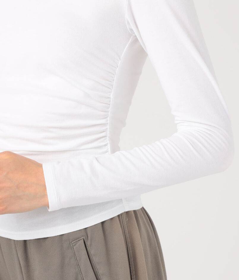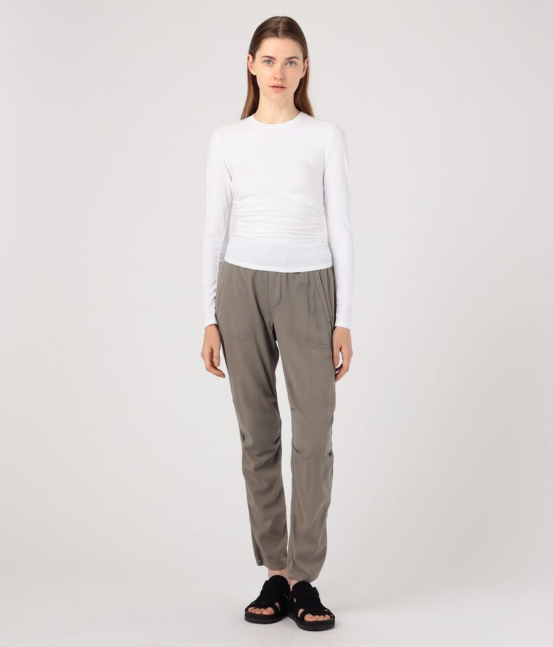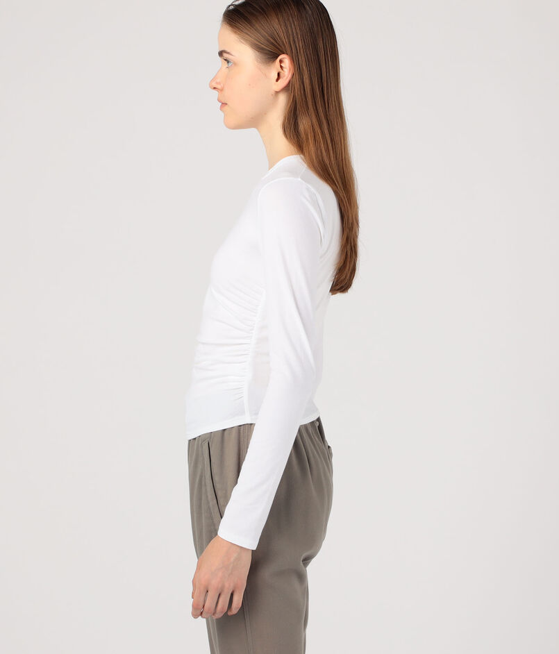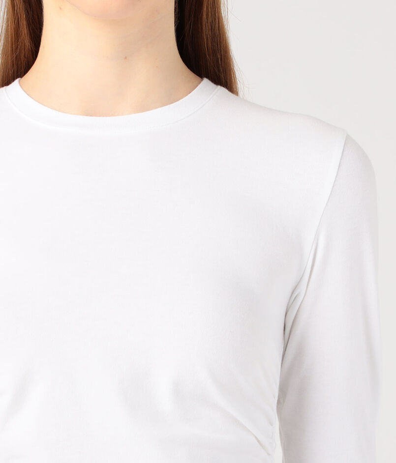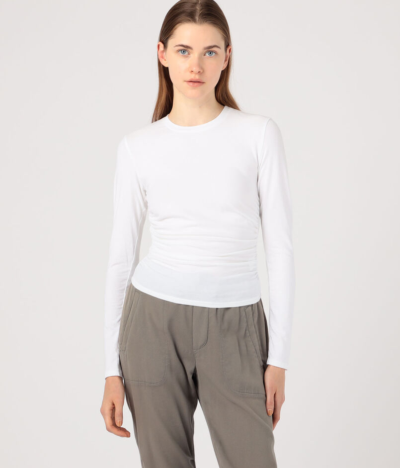 サイドのシャーリングディテールでボディラインに動きをプラスし、ブランドらしいヘルシーな着こなしが決まる一着。