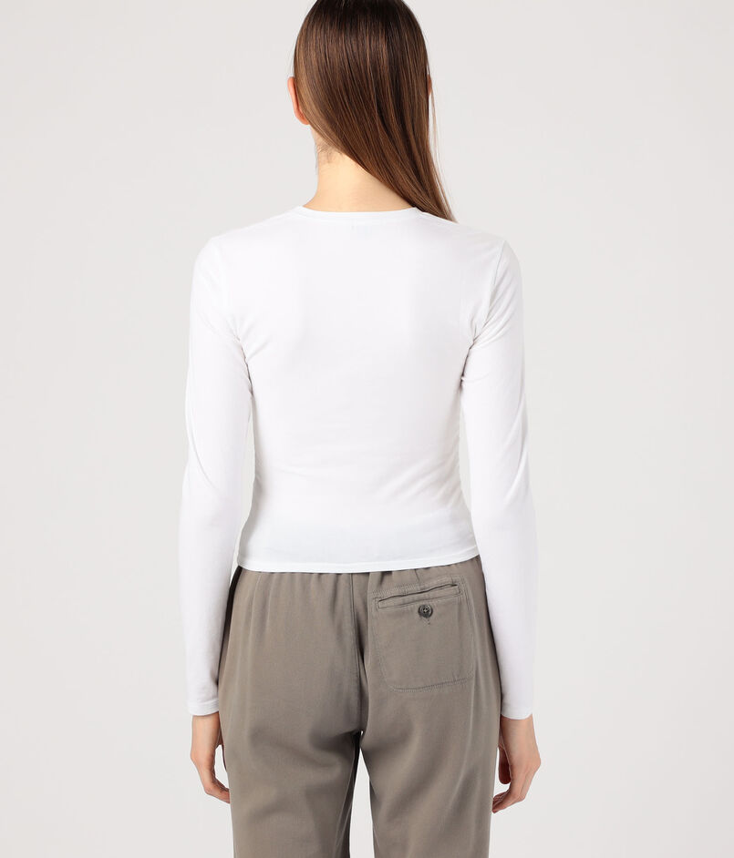 繊細な質感と非常にソフトなタッチが魅力の、日本製コットンポリエステルのジャージー素材で作られたTシャツ。