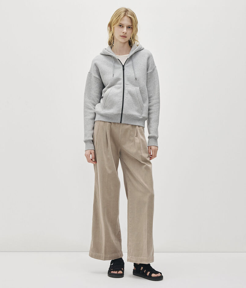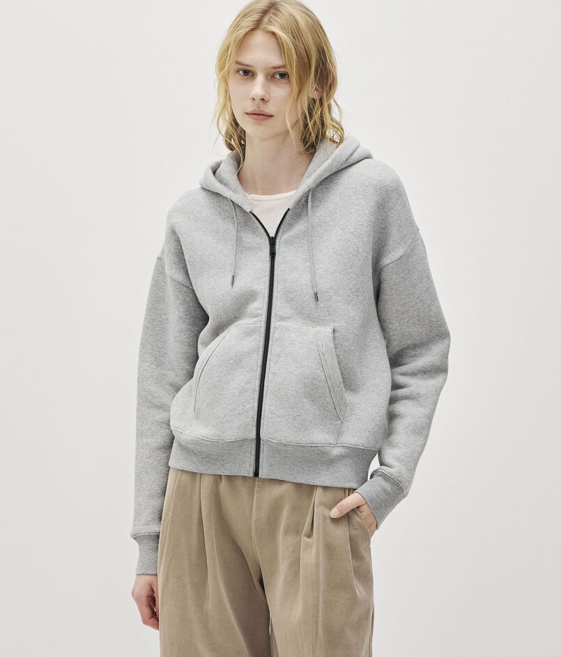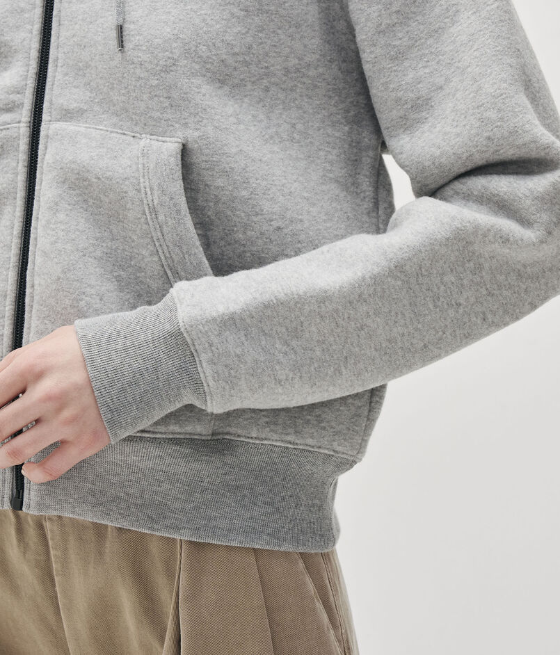 イタリア産のスエット素材で作られたジップフーディー。