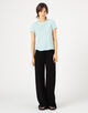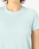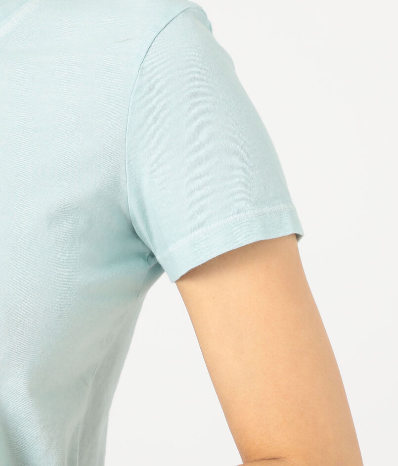 着心地の良いライトウェイトな素材感と襟ぐりの絶妙なあき具合が魅力。