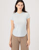 着心地の良い伸縮性に優れた素材と、クルーネックの襟ぐりのフィット感がポイントです。