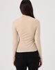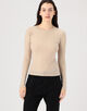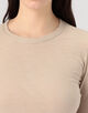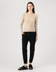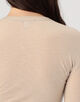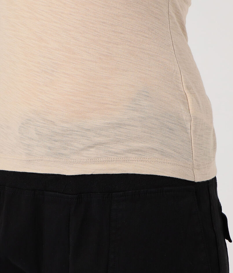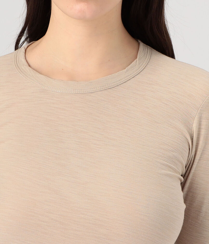 着心地の良い伸縮性に富んだ素材感とクルーネックの襟ぐりのフィット感がポイントです。