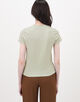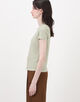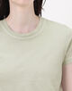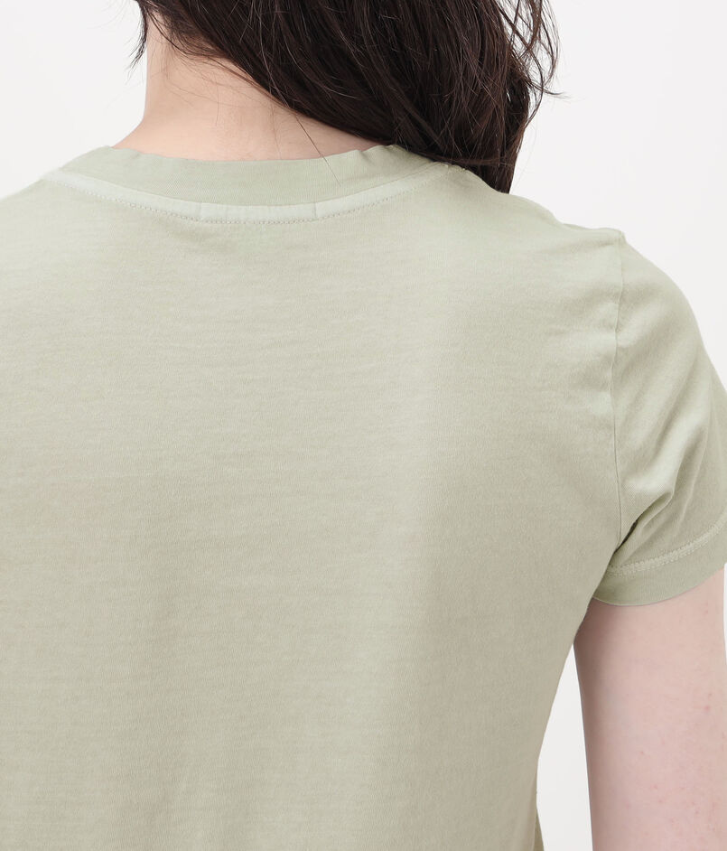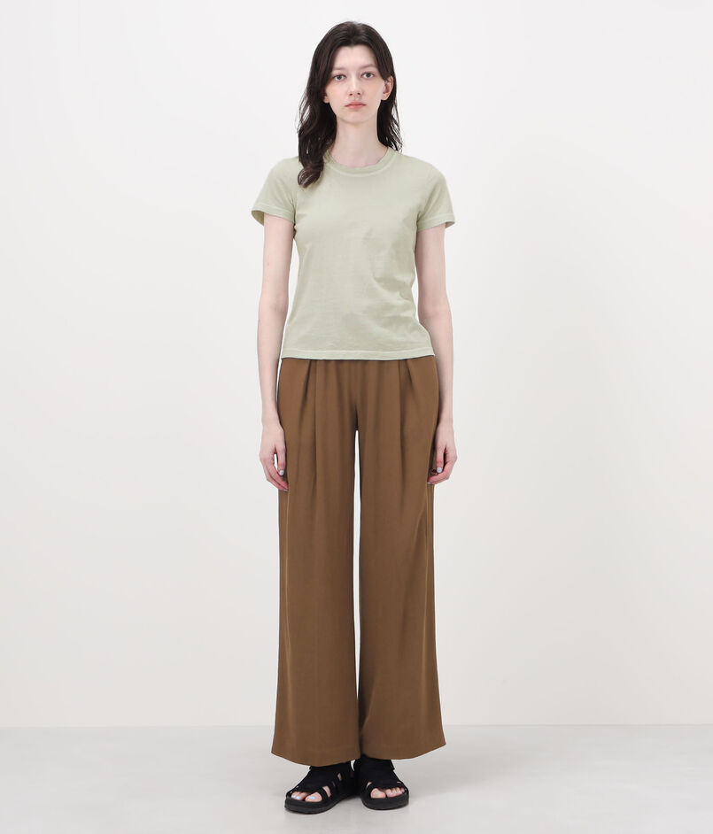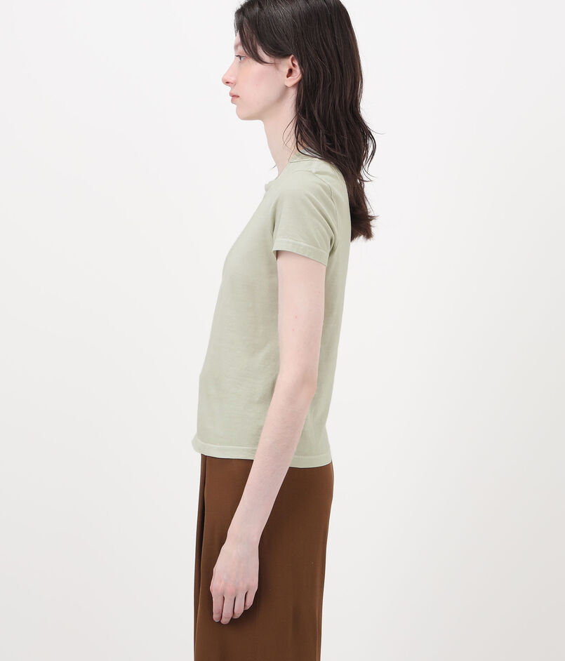 着心地の良いライトウェイトな素材感と襟ぐりの絶妙なあき具合が魅力。