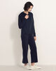 ドローコード付きの伸縮性ウエストバンド、サイドシームなしなどのリラックス感にこだわったディテールが特徴。