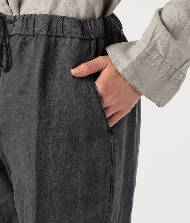 ライトウェイトなリネンのパンツは、通気性がよく柔らかな素材感が特徴。