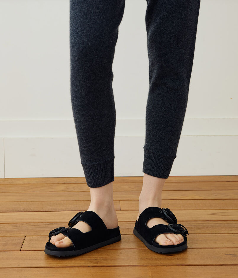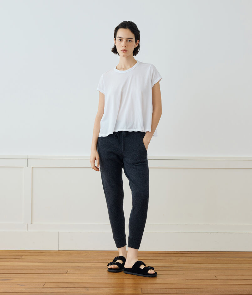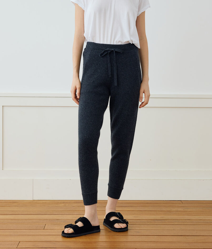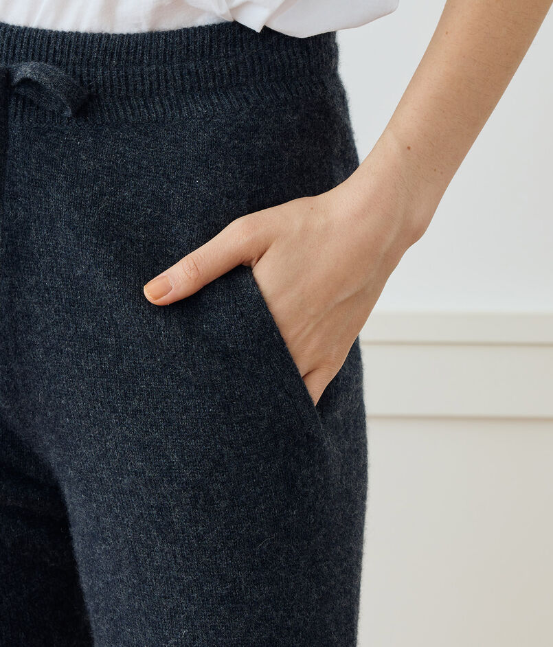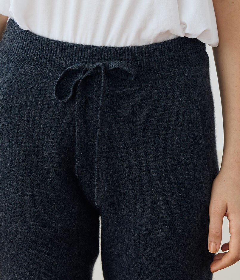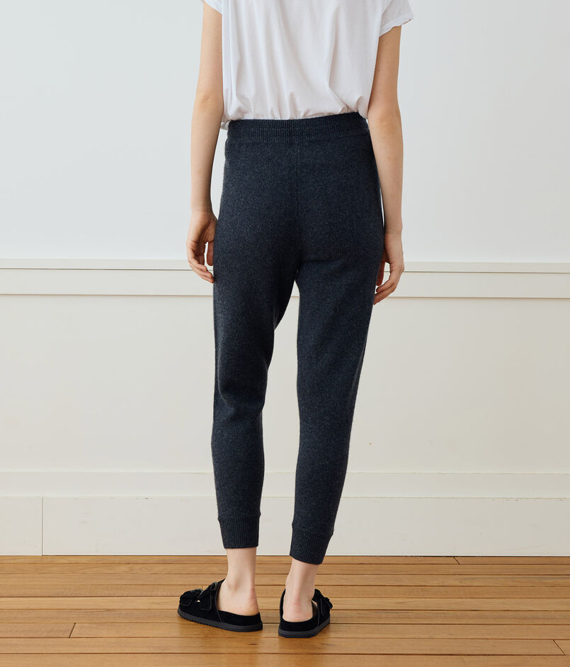 リサイクルカシミヤ繊維で作られたトラックパンツ。