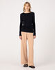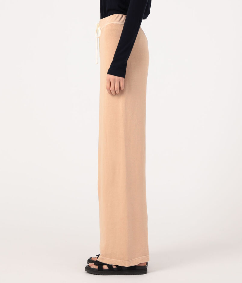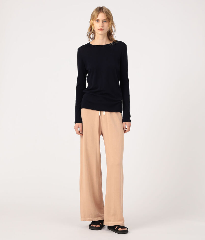 伸縮性のあるウエストバンドとドローコード、すっきりとした裾のワイドレッグが特徴で、リラックスしたフィット感がデイリーユースにおすすめのアイテムです。