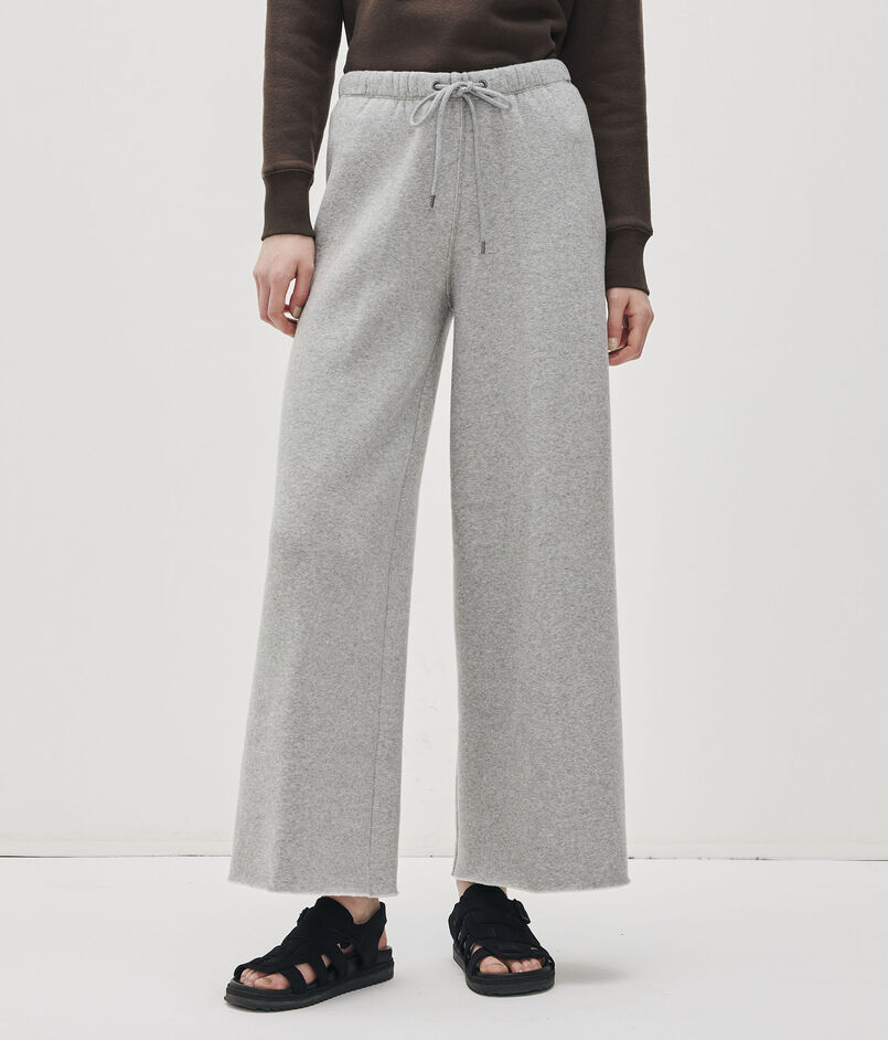 伸縮性のあるウエストバンドとドローコード、すっきりとした裾のワイドレッグが特徴で、リラックスフィットが実現。
