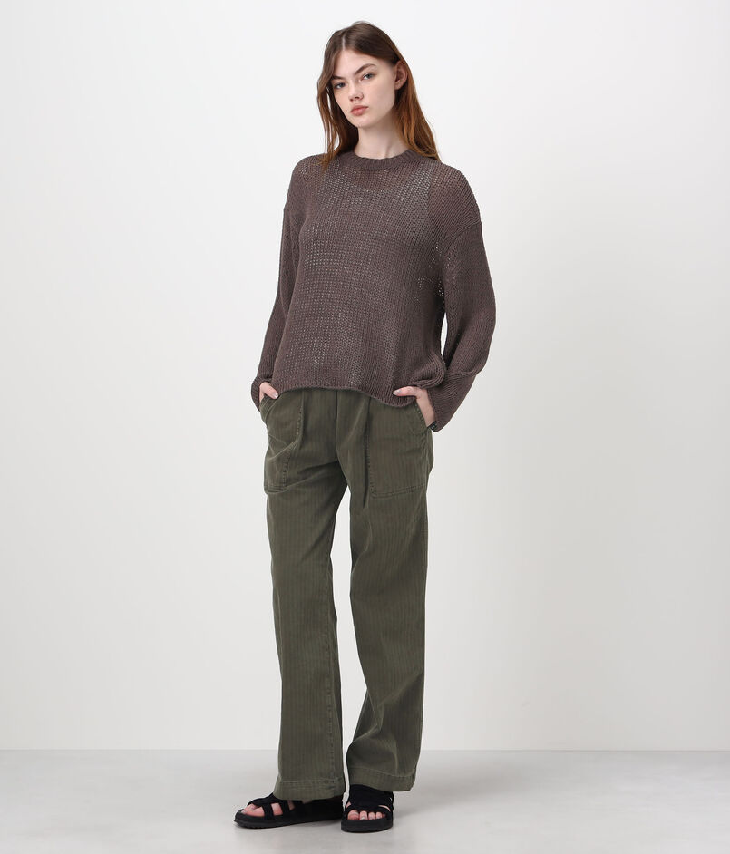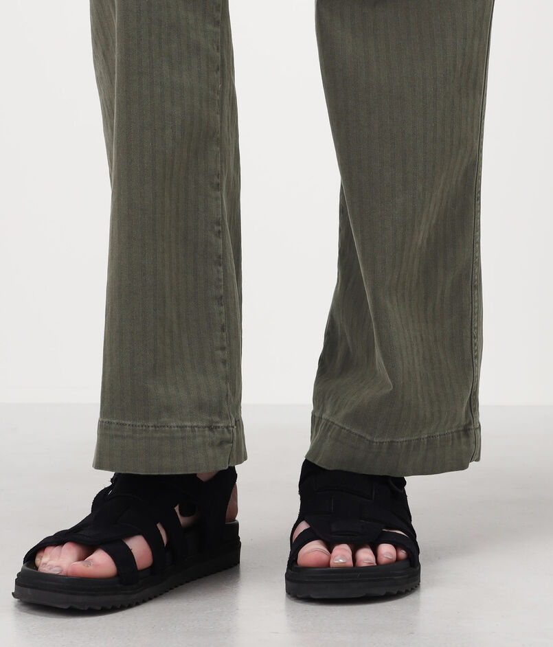 ゆったりとしたストレートフィットにデザインされたヘリンボーンツイルパンツは、テーラードなディテールと着心地の良い構造を兼ね備えています。