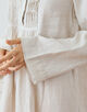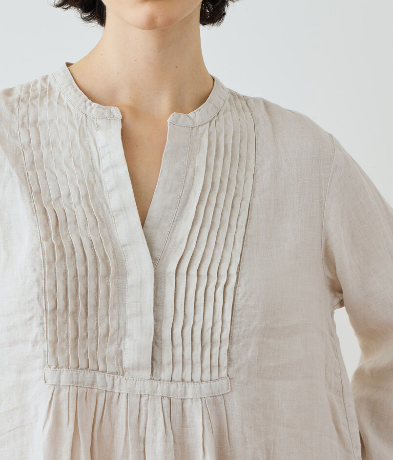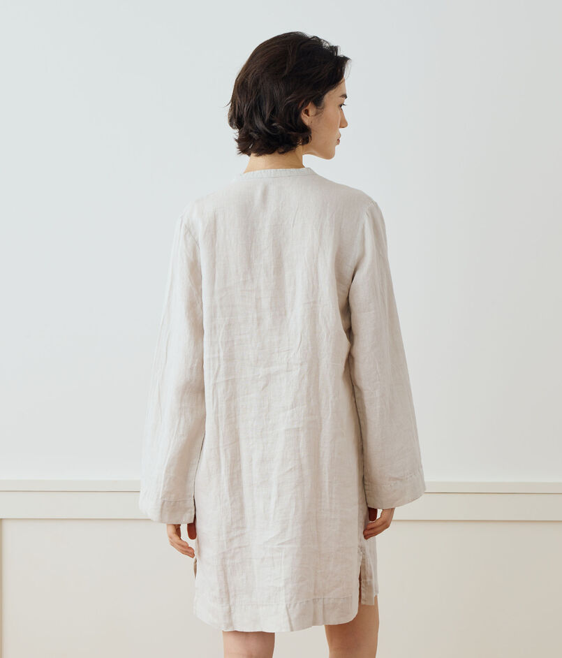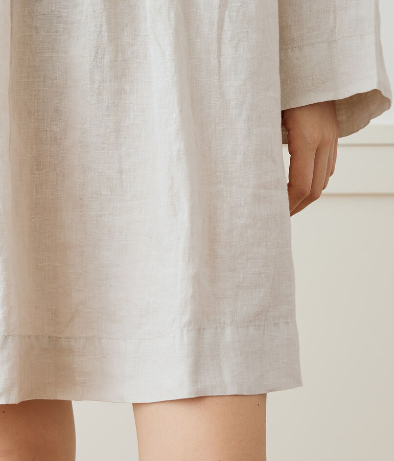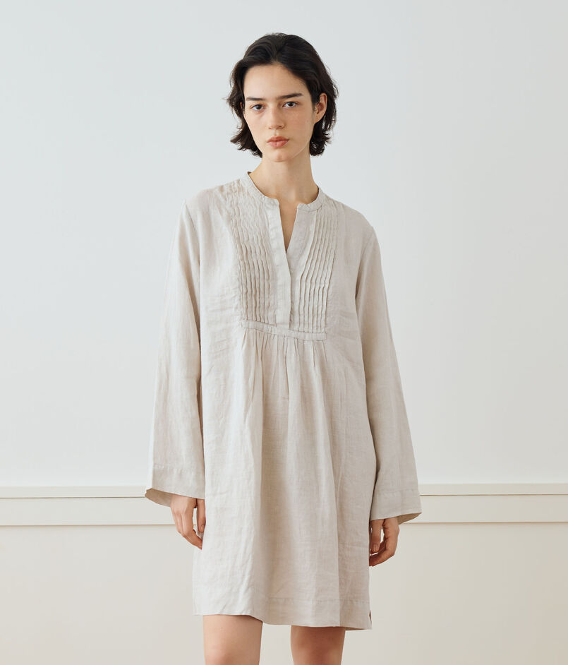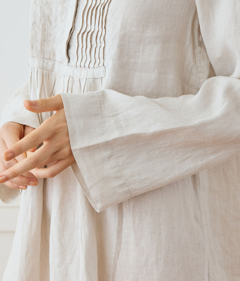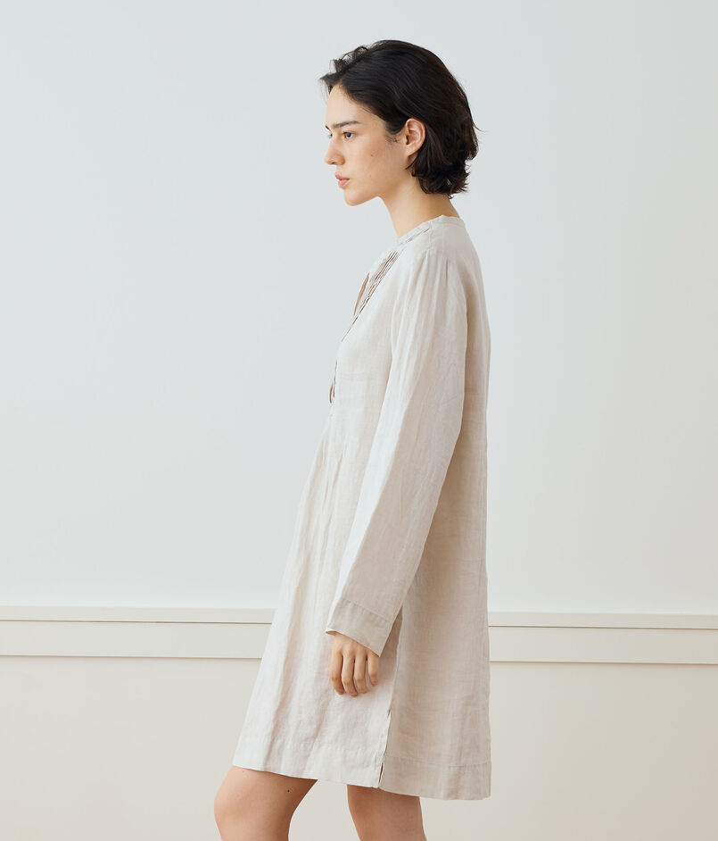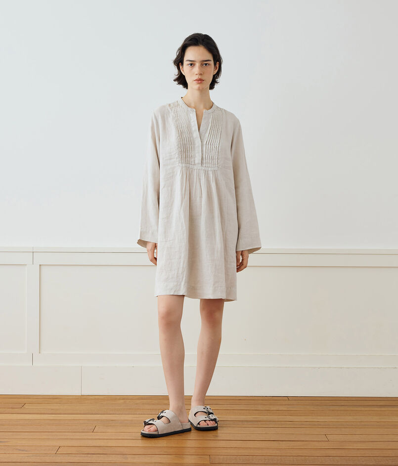 通気性と柔らかさに優れた軽量なリネン素材で作られたワンピース。