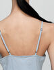 華奢なストラップや大胆なバックオープンのデザインでヘルシーな印象に。