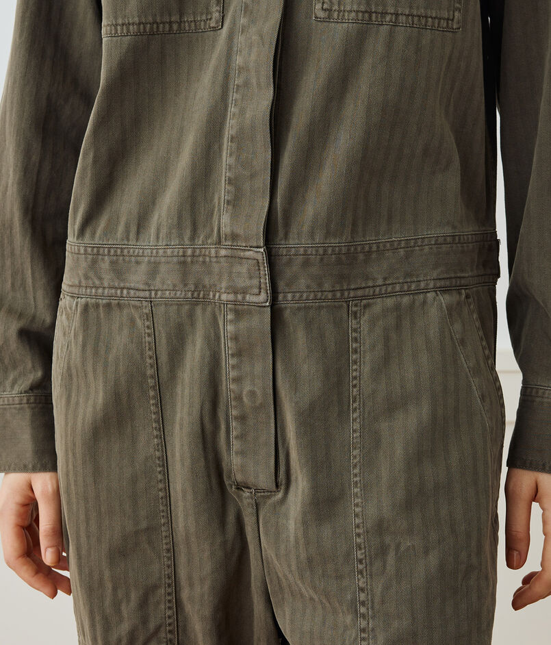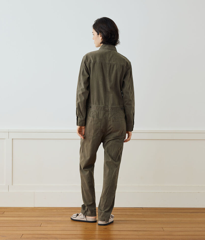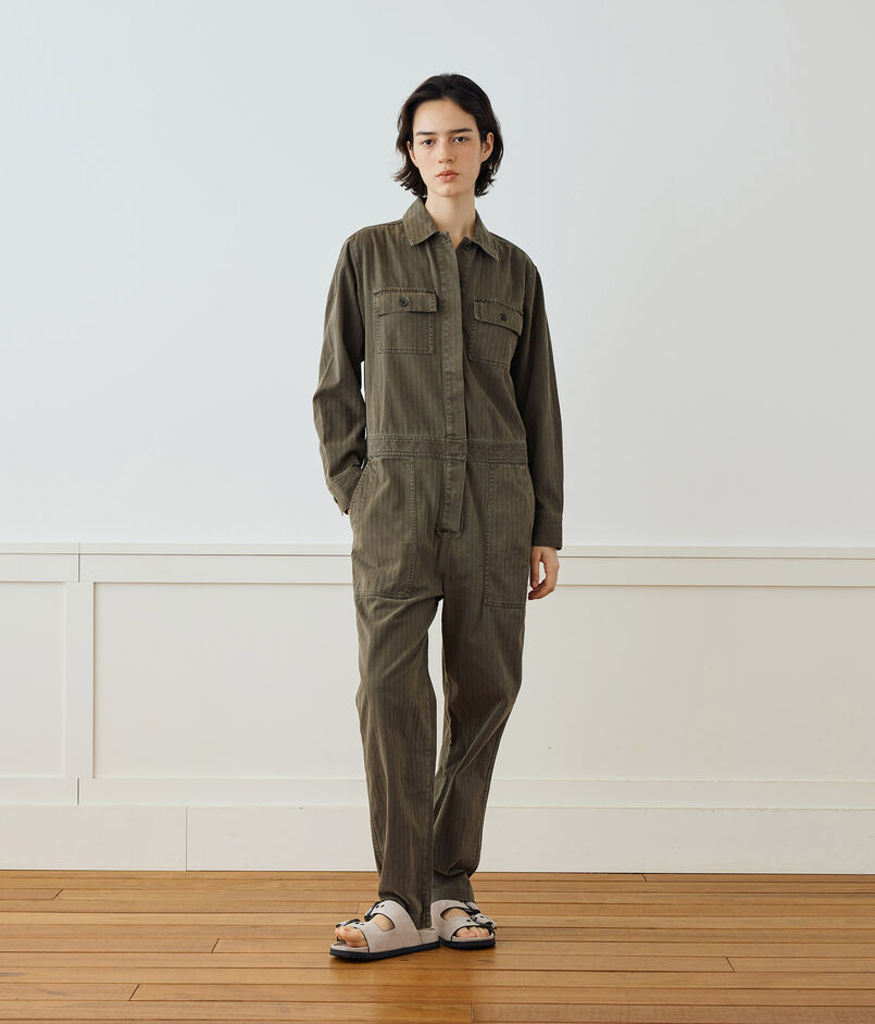 上質なイタリア産の起毛ヘリンボーン素材で作られたジャンプスーツ。