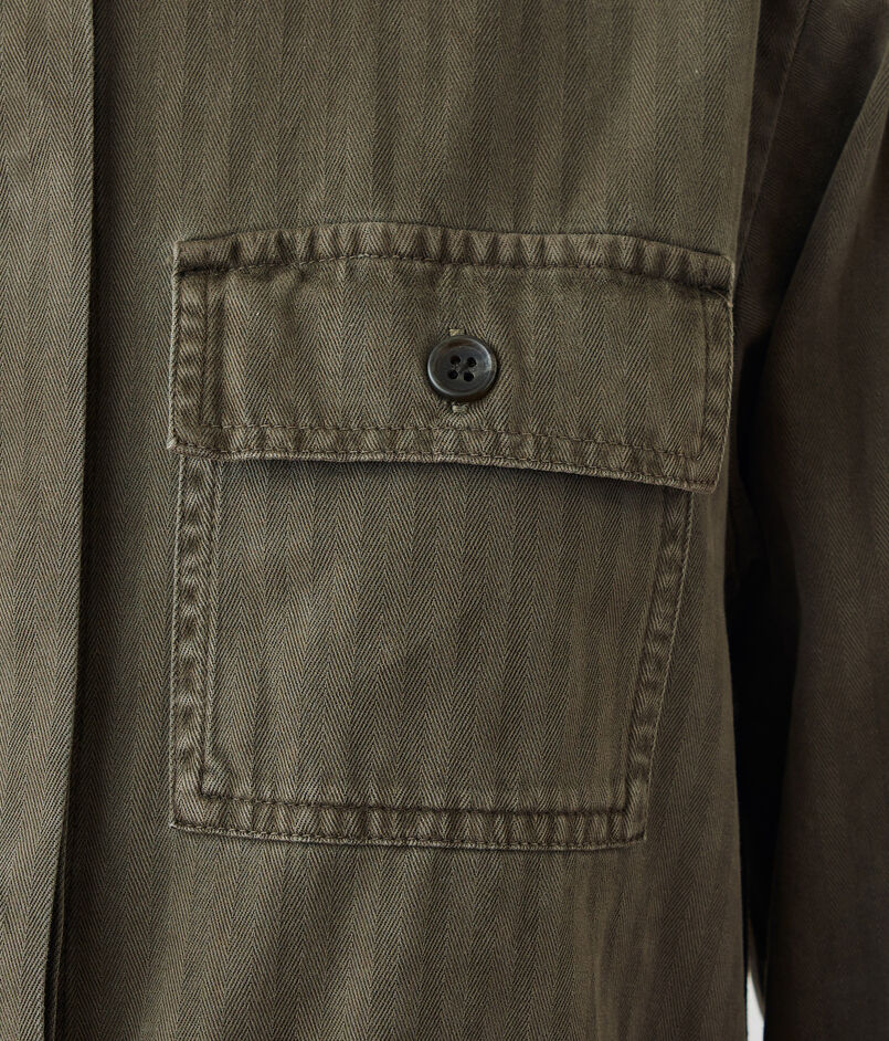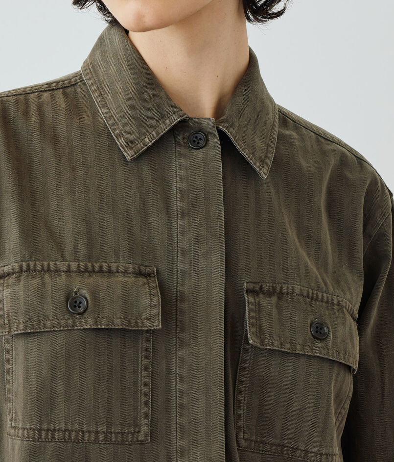 胸元のポケットがカジュアルなアクセントに。
