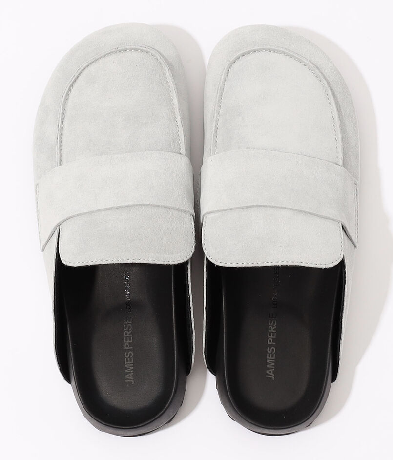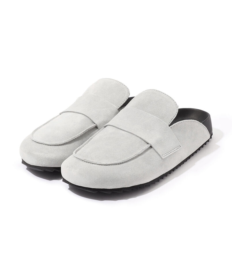 スペイン産カーフレザー100%のスエード製スリッポンローファー。