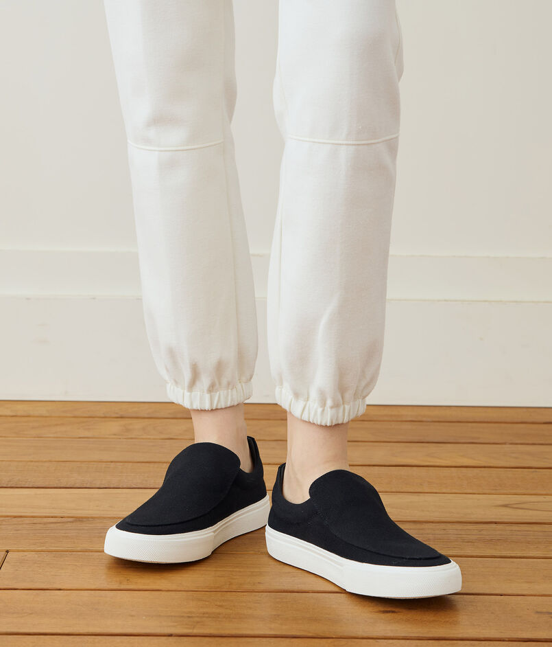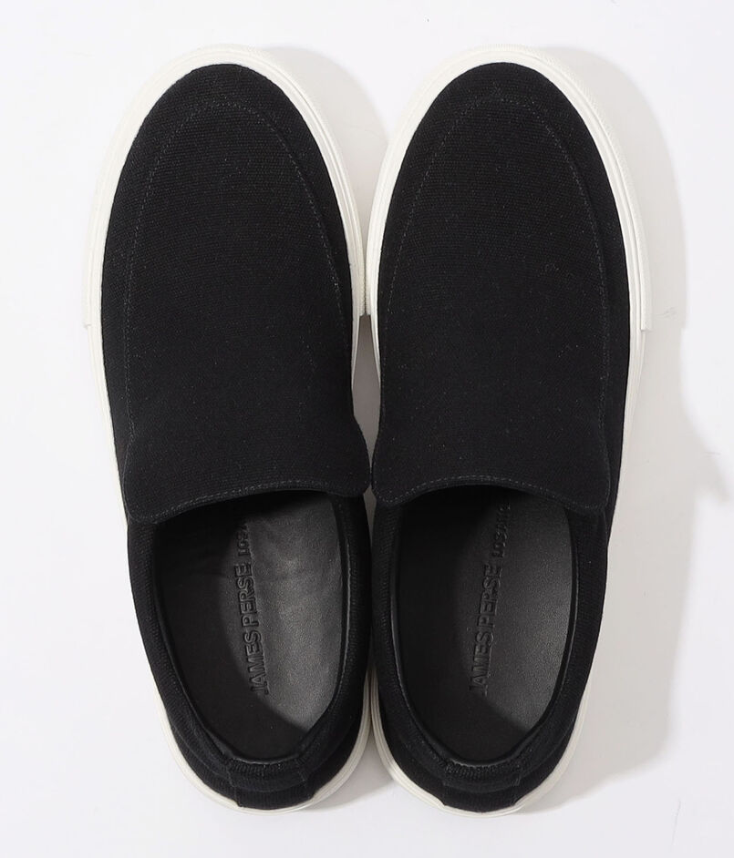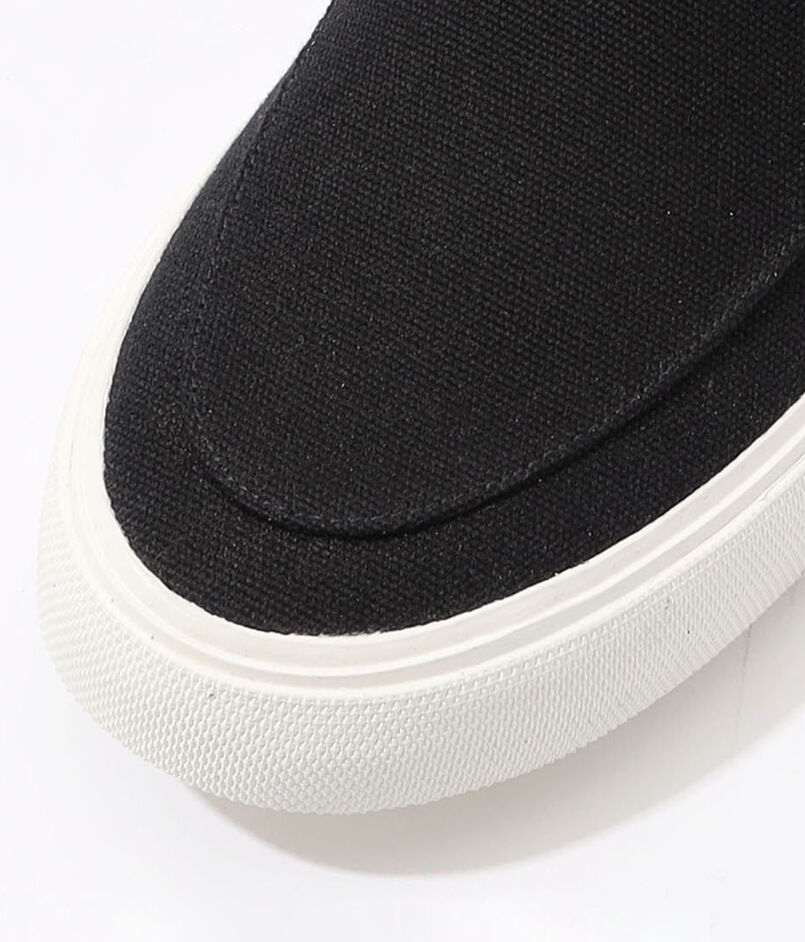 コットンキャンバスとゴムソールで作られたスリッポン。