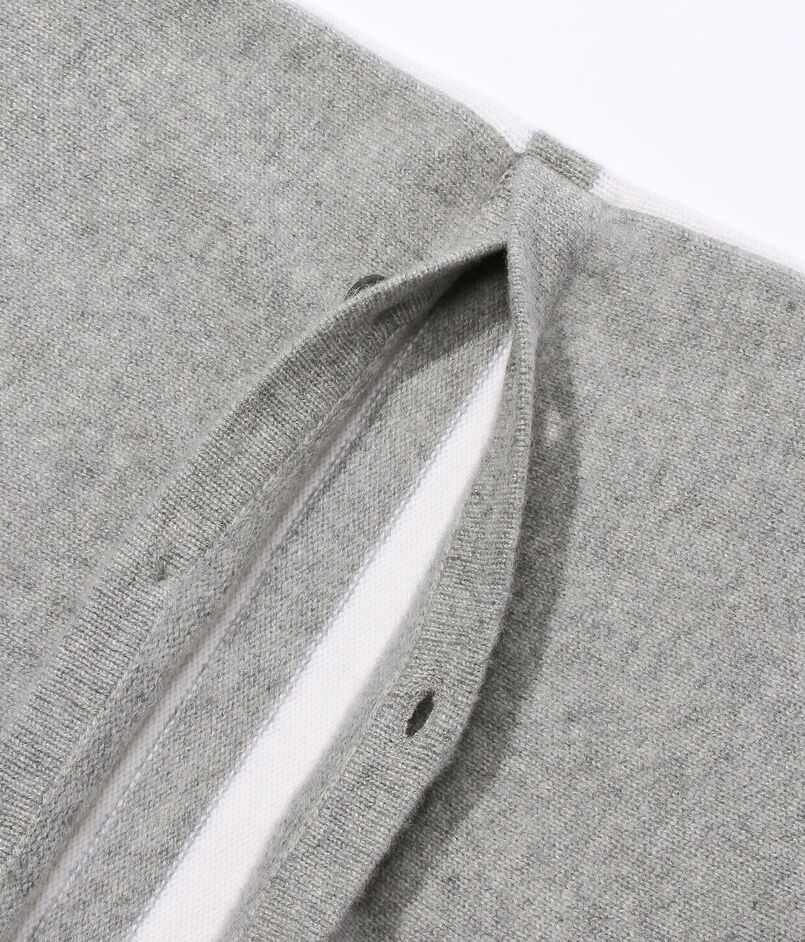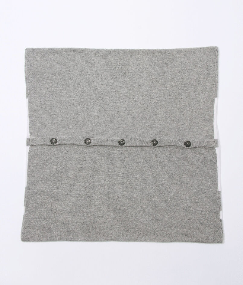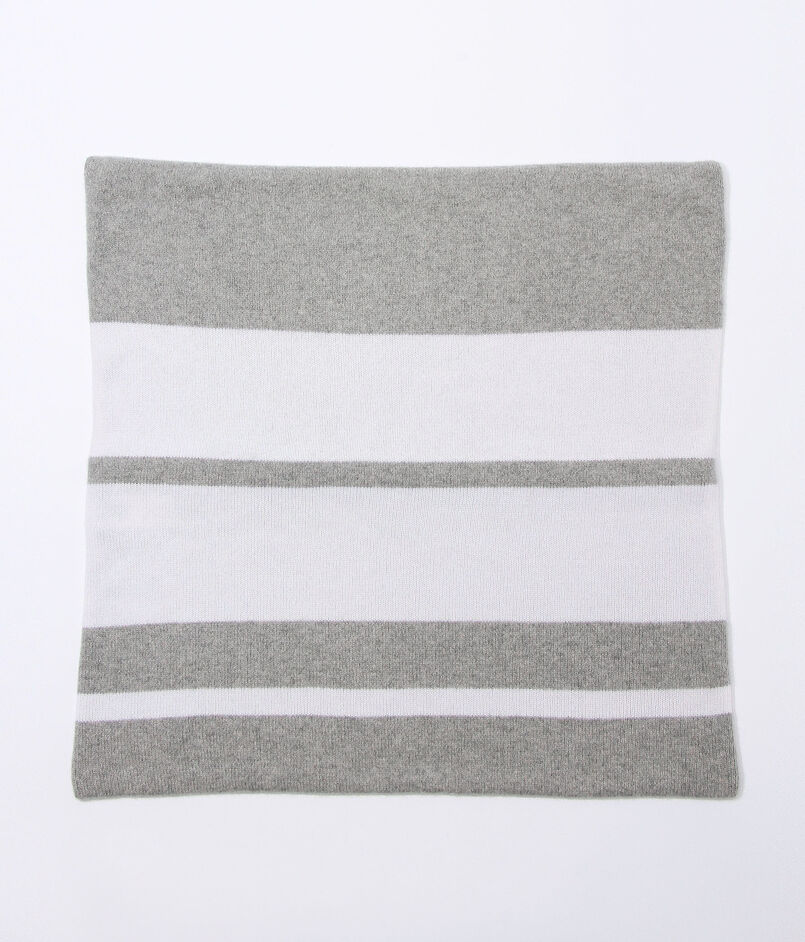 太めのランダムストライプと無地のコンビが〈JAMES PERSE〉らしいカシミヤのクッションカバー。