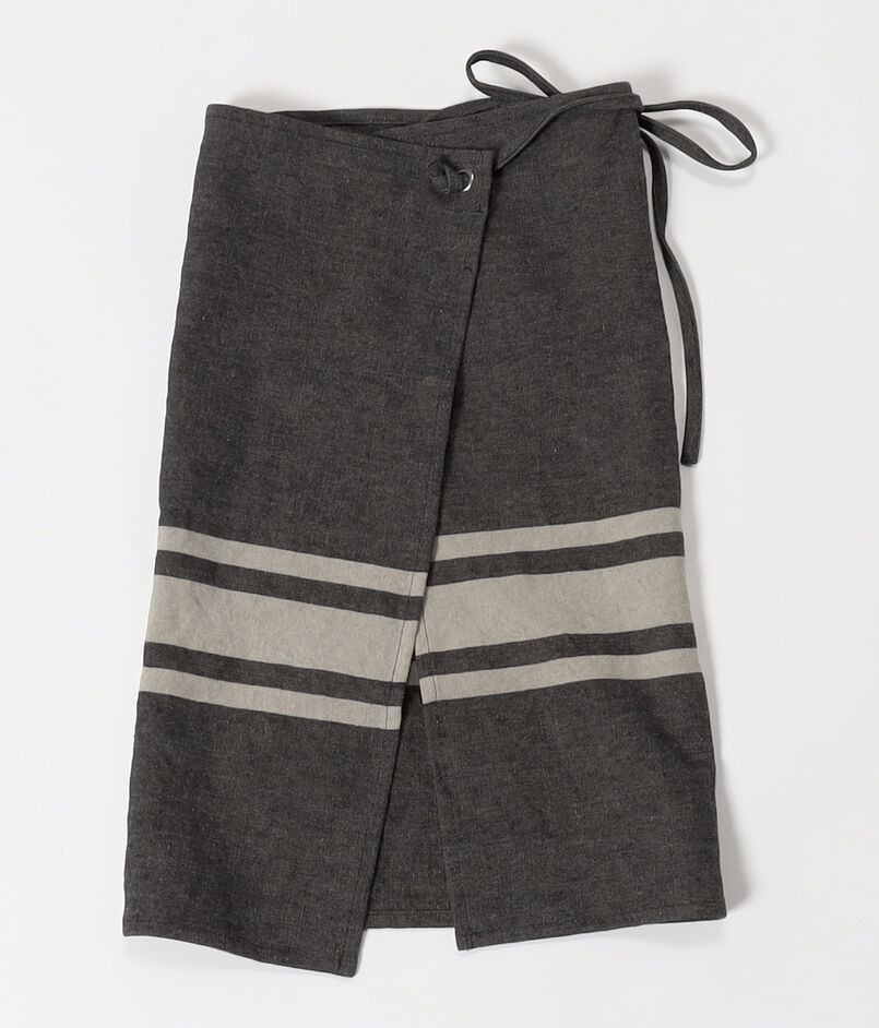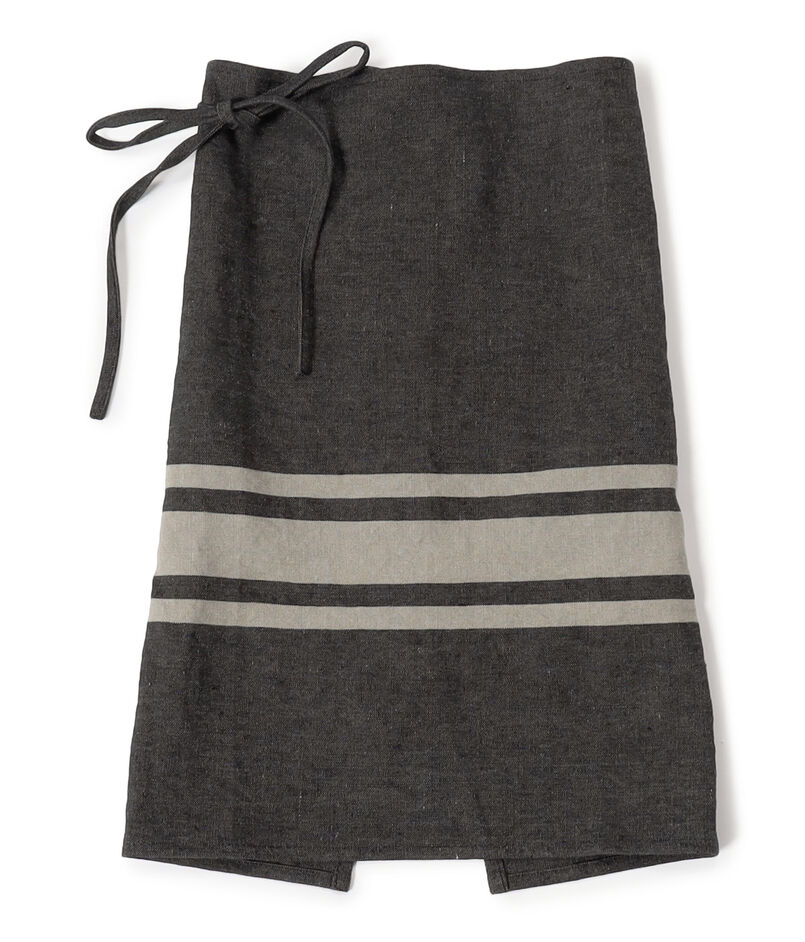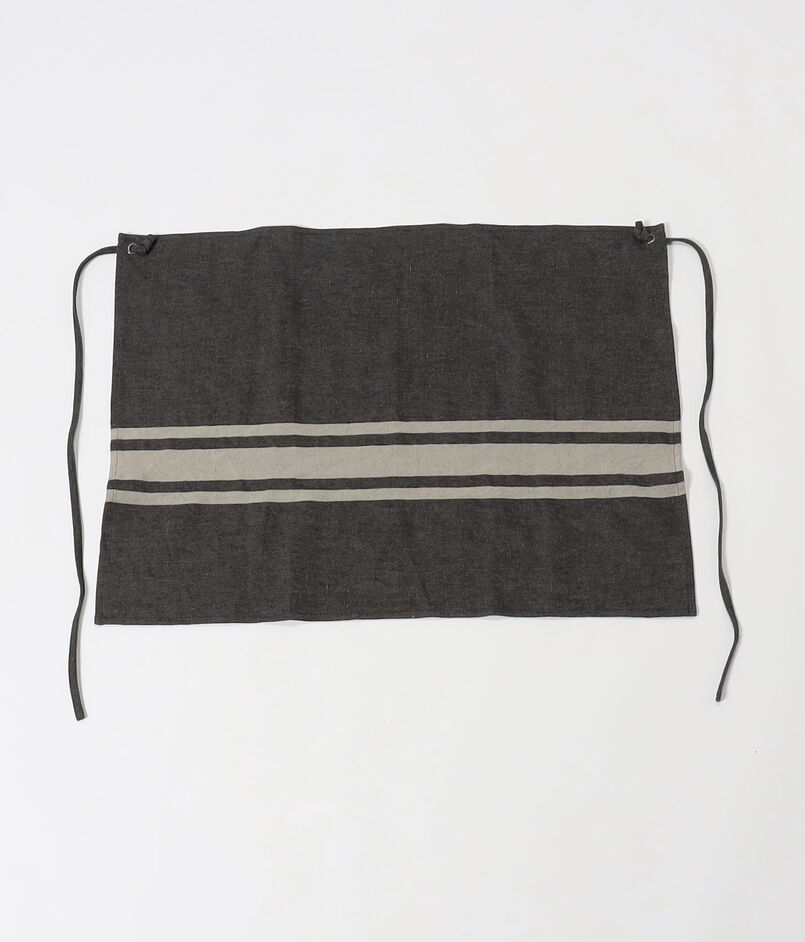 ベルギー産の高級リネンを使用し、織り込まれたトリプルストライプが特徴のスリーストライプ ハーフエプロン。