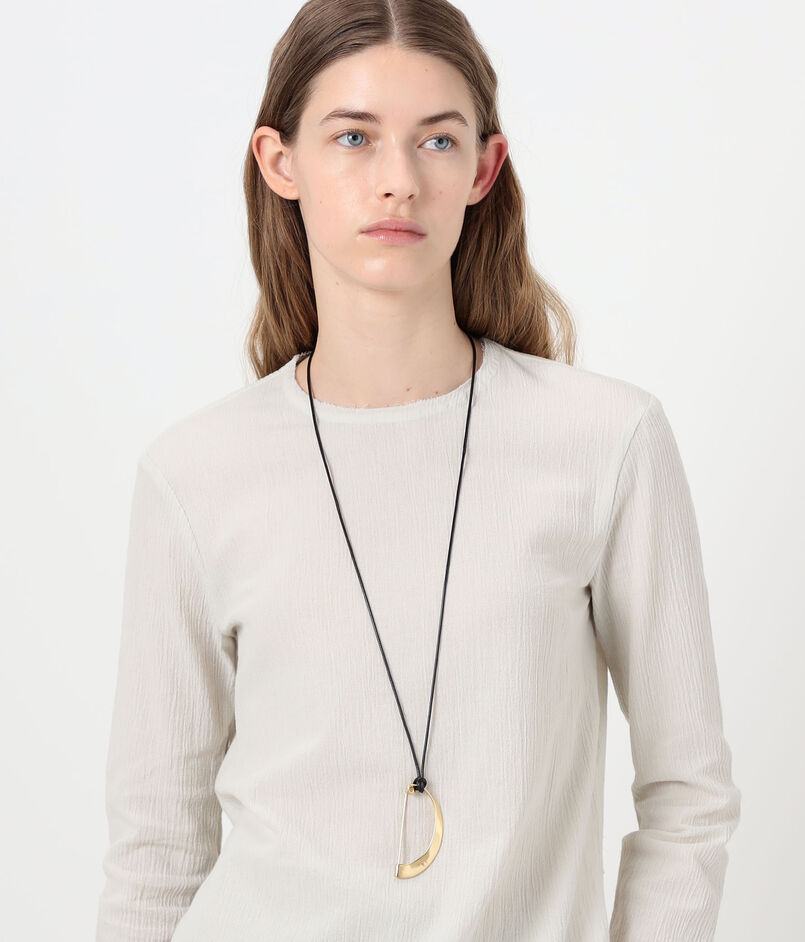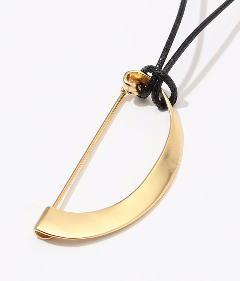 カーブを描く繊細なラインと、彫刻のような造形美が印象的なブローチピンをトップに配したコードネックレス。