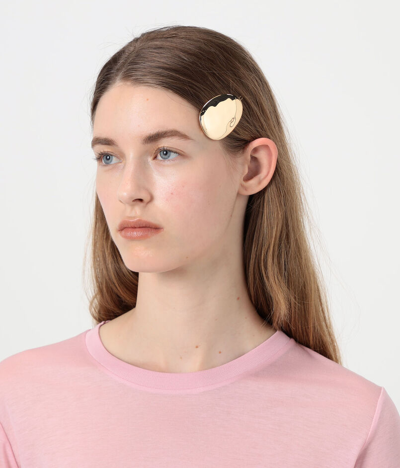 自然に削られた石を思わせる、柔らかな曲線と質感を連想させる、滑らかな小石のようなフォルムが特徴的なオーバルバレッタ。