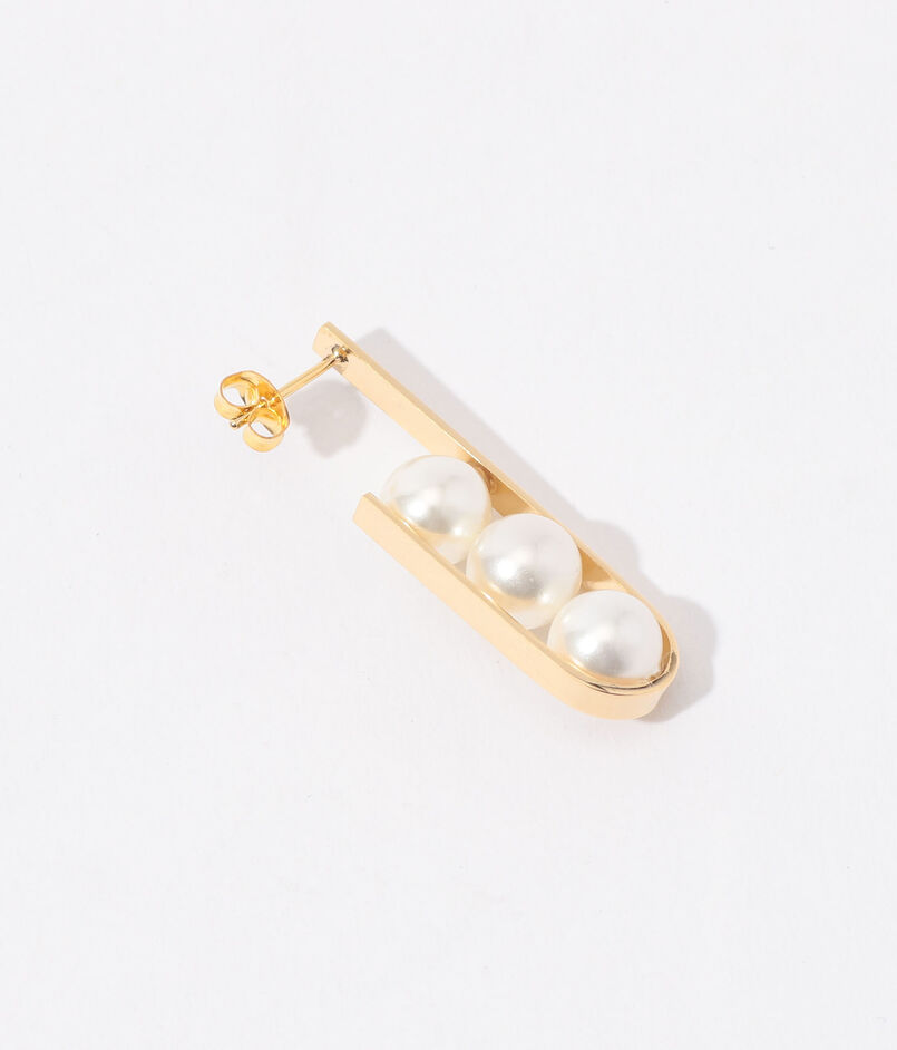 連なる3つのパールをゴールドのパーツで包んだモダンなデザインはTOMORROWLANDだけのスペシャルなアイテム。