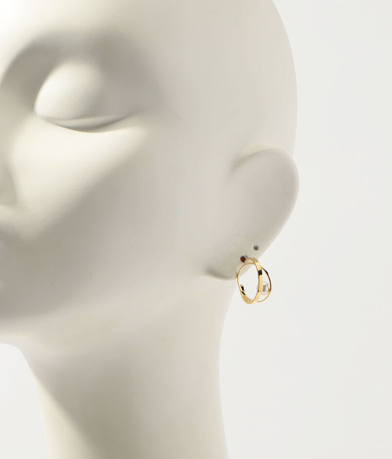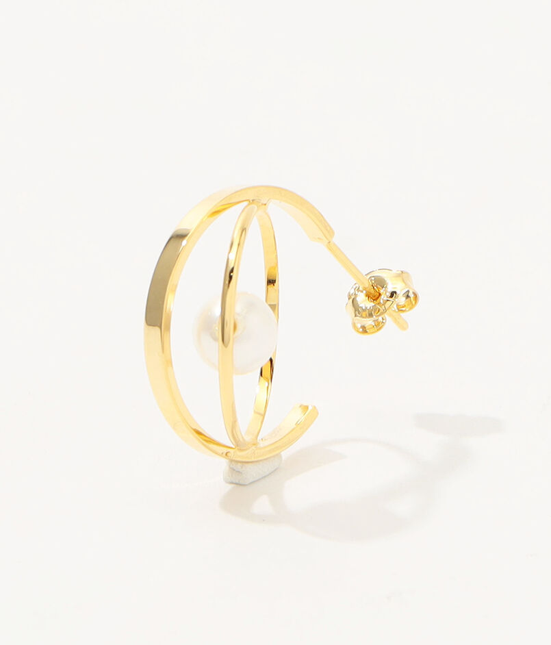 太さの異なる2つのフープにパールが浮いて見える立体的なデザインで、どの角度から見ても素敵な、表情豊かなピアス。