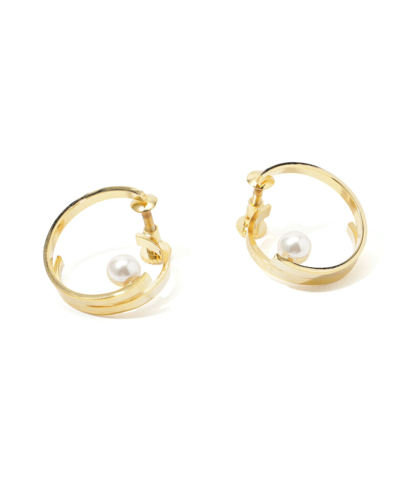 フープにパールが浮いて見える立体的なデザインで、表情豊かなイヤリング。