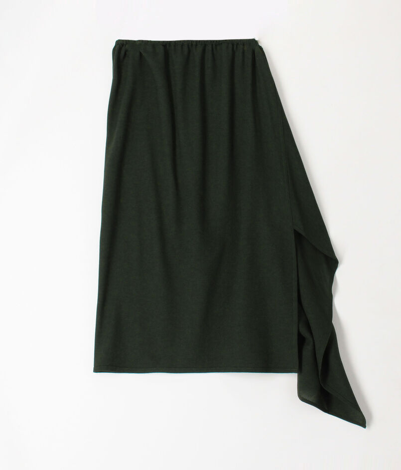 ドレープの落ち感がエレガントな印象のアシンメトリーのドレープスカート。