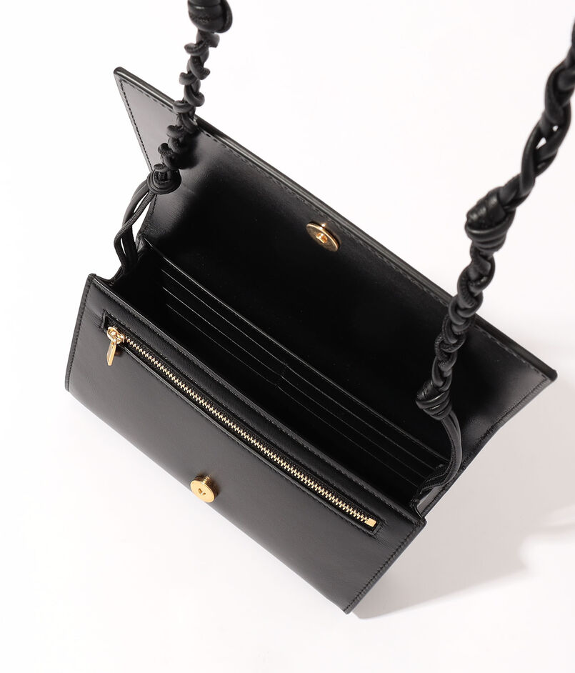 ハンドメイドのノットストラップがアイコニックな、『TANGLE』シリーズのウォレットバッグ。