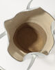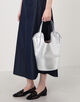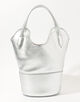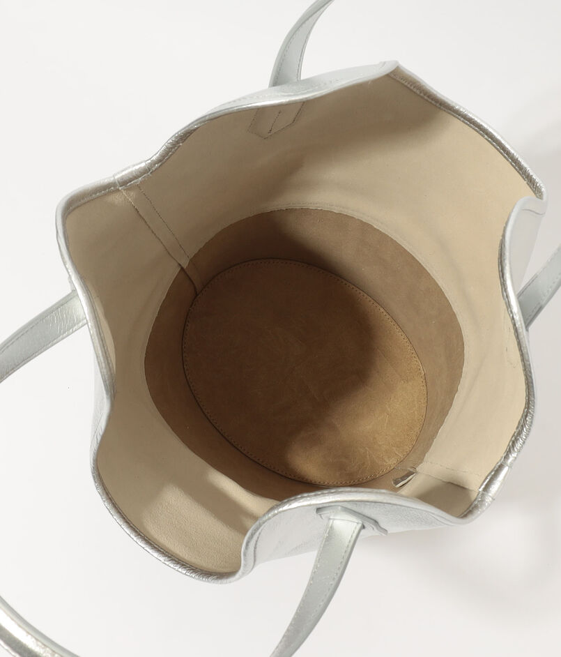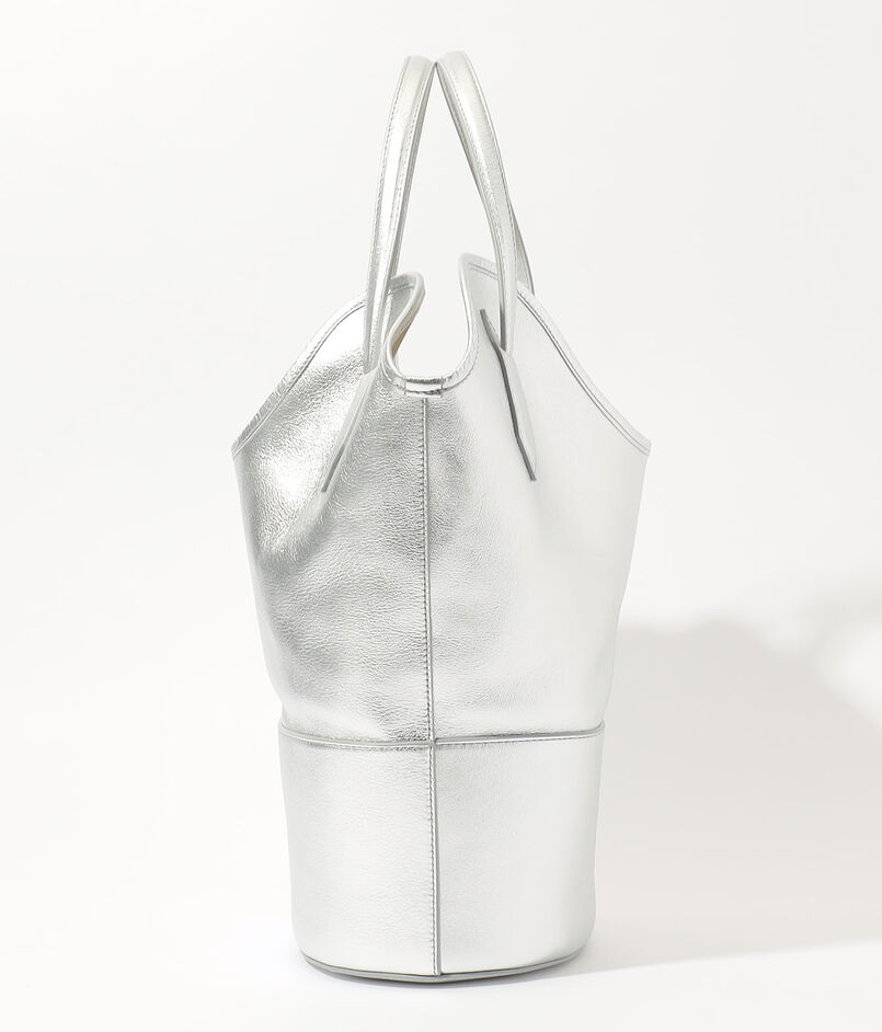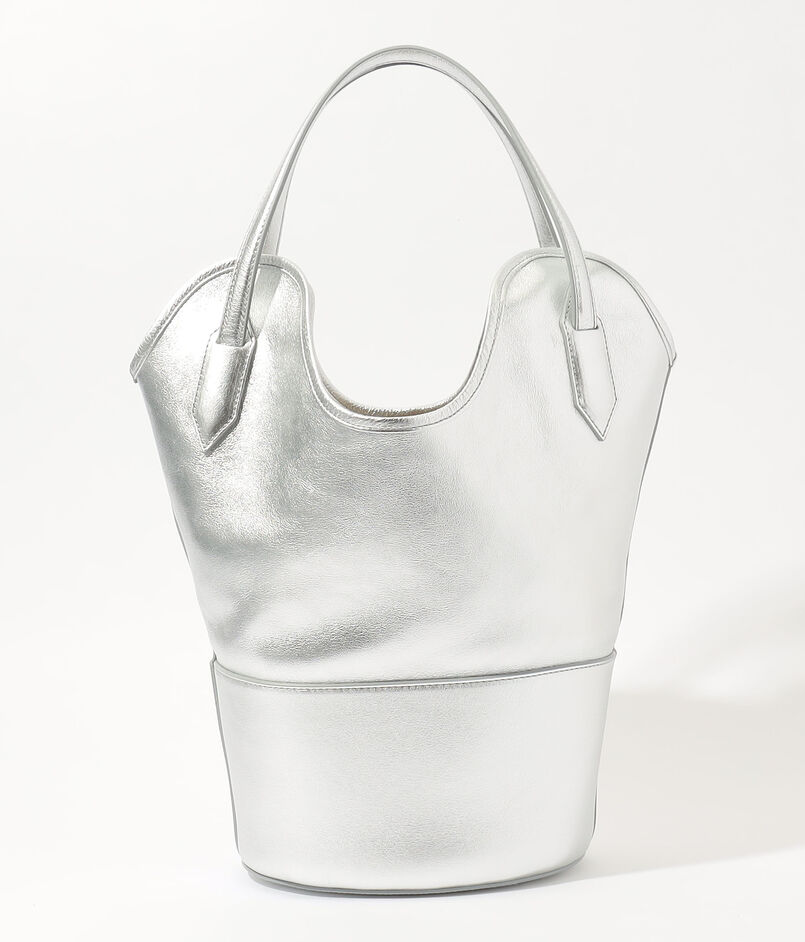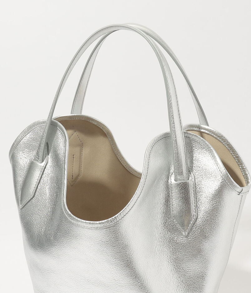 バッグ本体の中央を波打つように走る独創的なハンドル形状は、デザインのアクセントとしてだけでなく、スムーズな肩掛けを可能にする機能性も兼ね備えています。