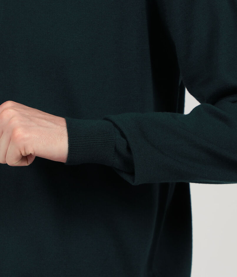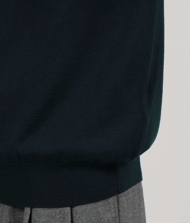 少し厚めの生地感が特徴の24G。〈JOHN SMEDLEY〉の代名詞でもあるハイゲージの30Gニットと比べてややカジュアルな印象で、スウェットのような着こなしもできます。