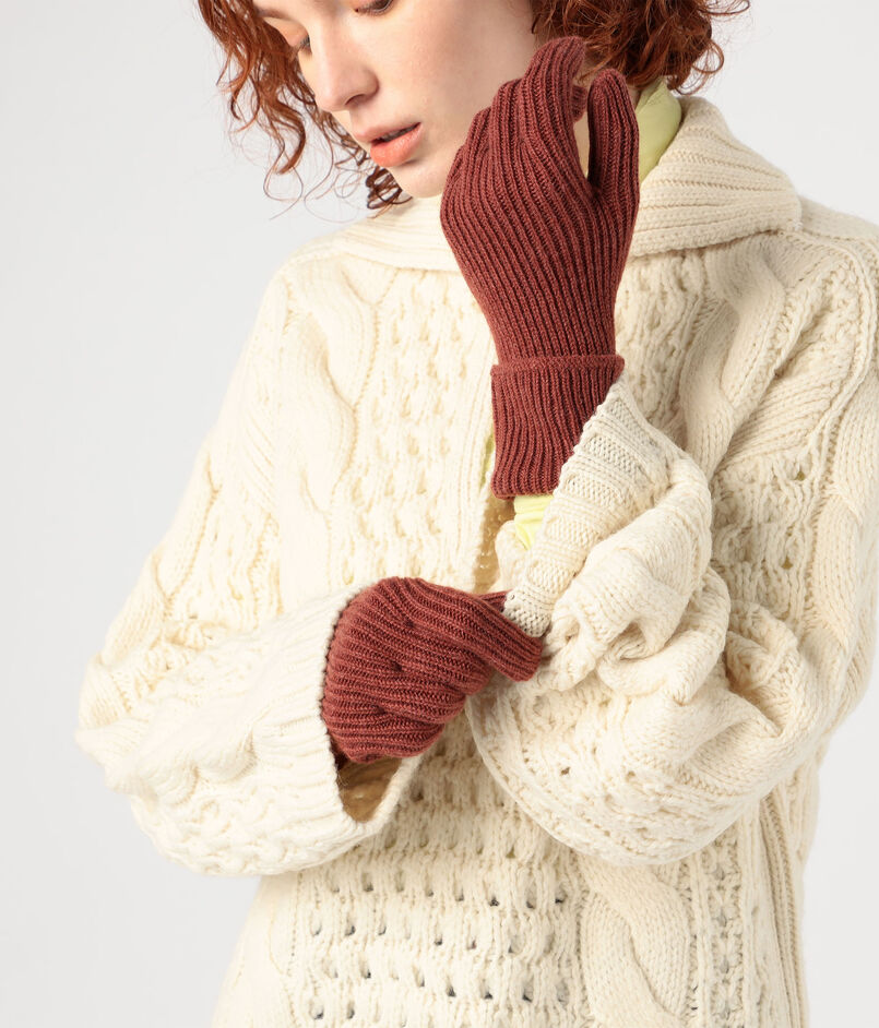 Johnstons of Elgin カシミヤ リブニット グローブ