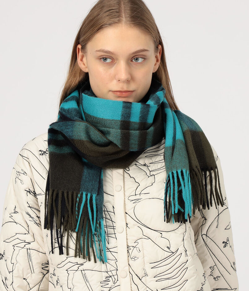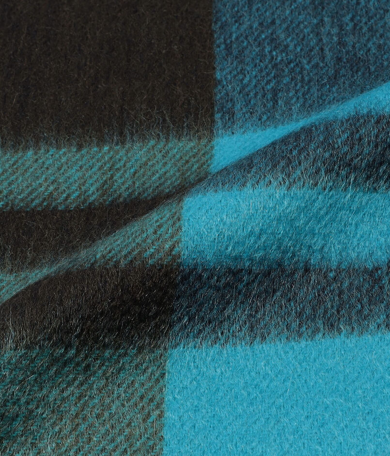 ビビットなブルーにトレンドのブラウンを掛け合わせたカシミヤ100%のストール。