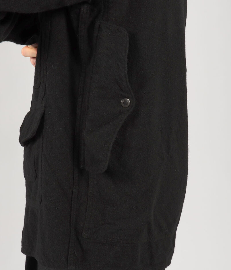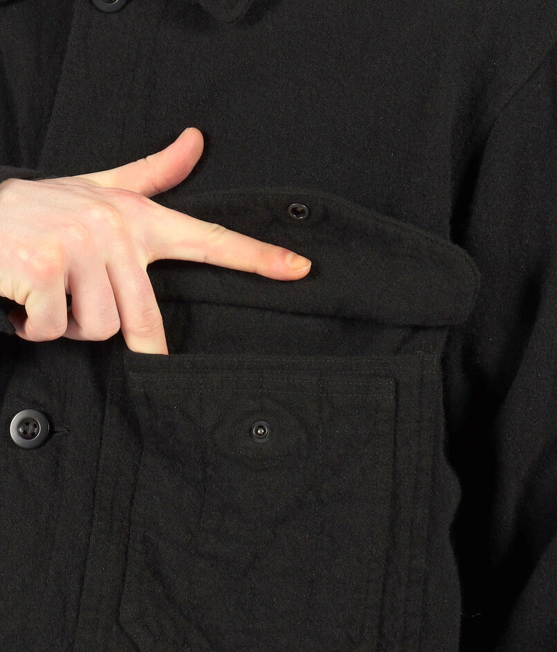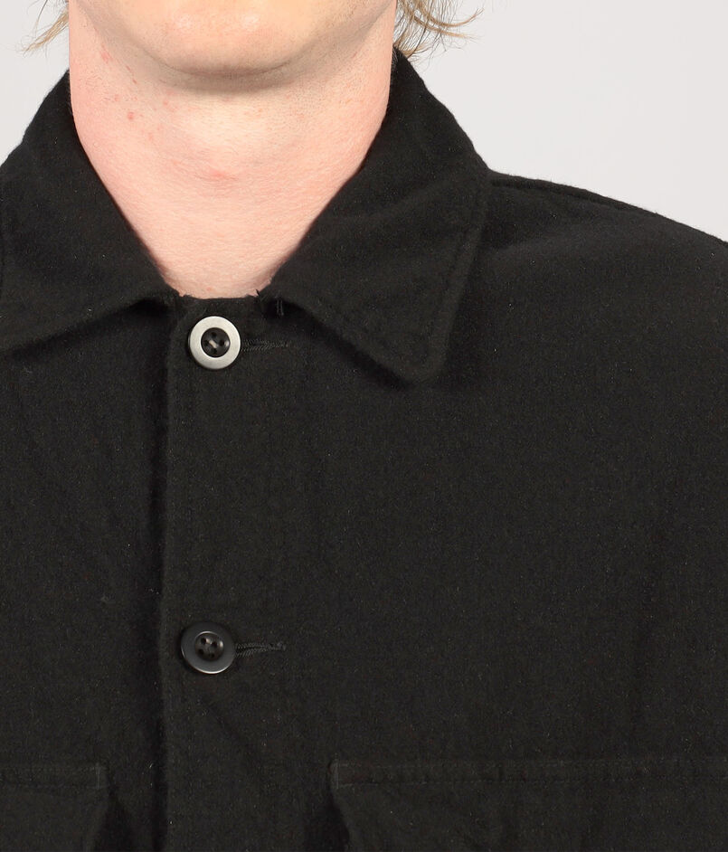FILSONの代名詞となるマッキノーウールのクルーザージャケットをデザインベースとし、縮絨加工と製品染めで〈JUNYA WATANABE MAN〉らしい洗練された表情にアップデートしています。