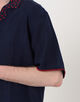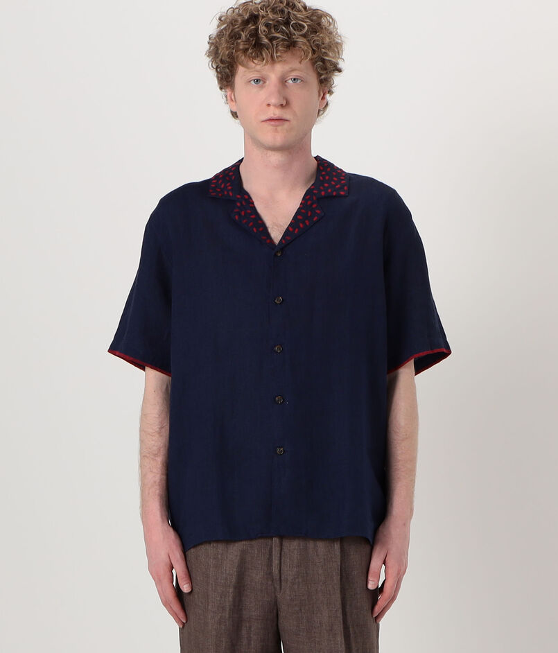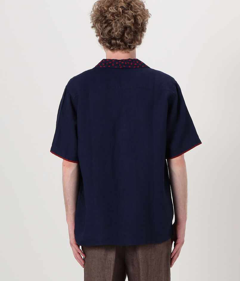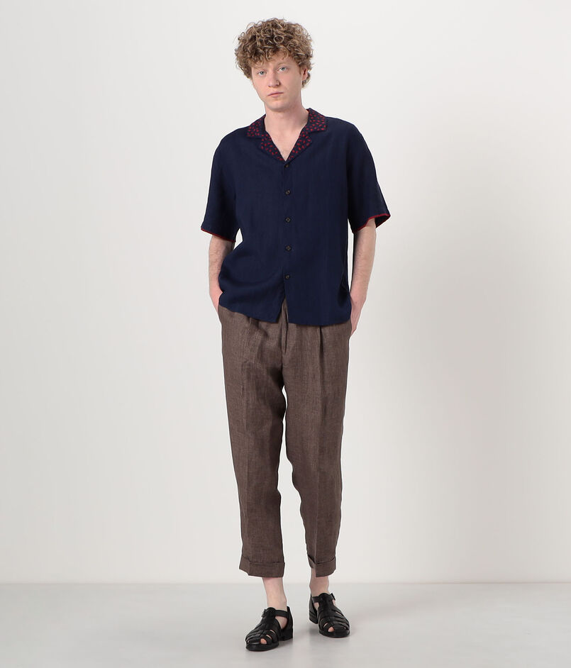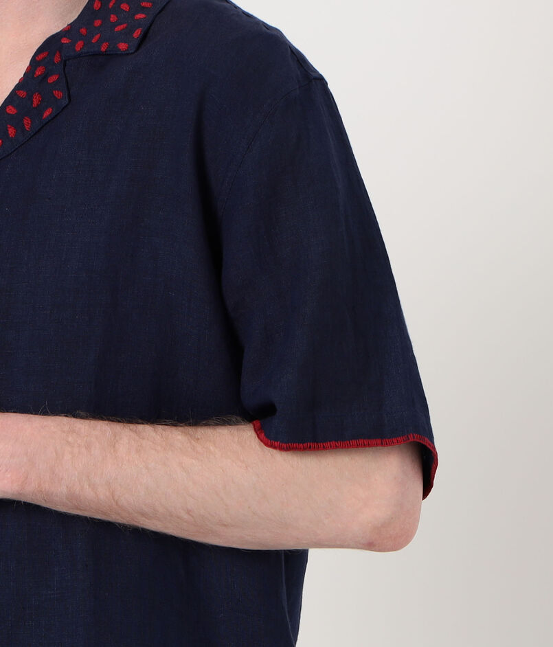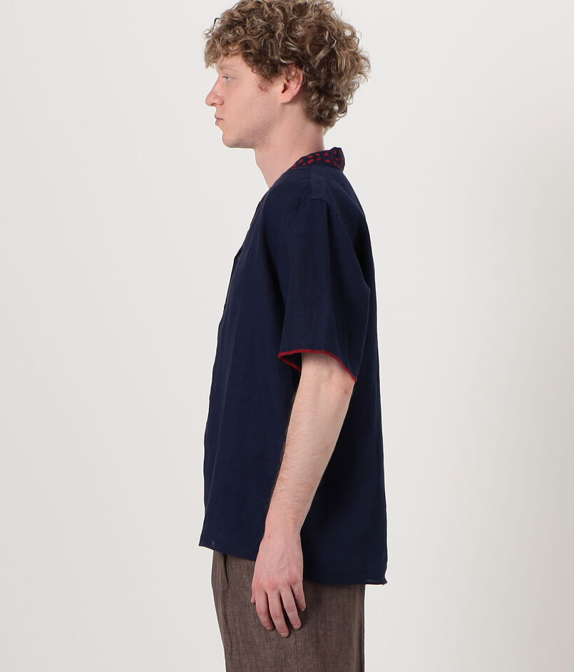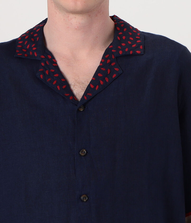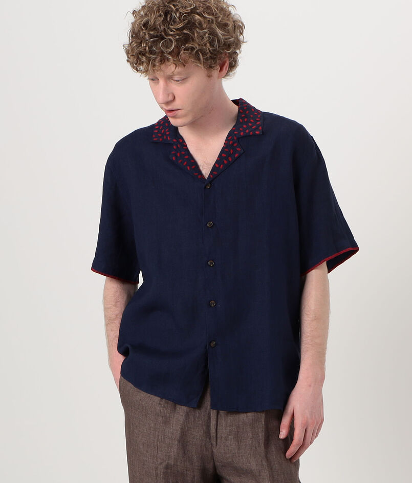 JUPE BY JACKIE Sasim Navy リネン エンブロイダリー オープンカラーシャツ