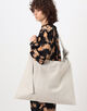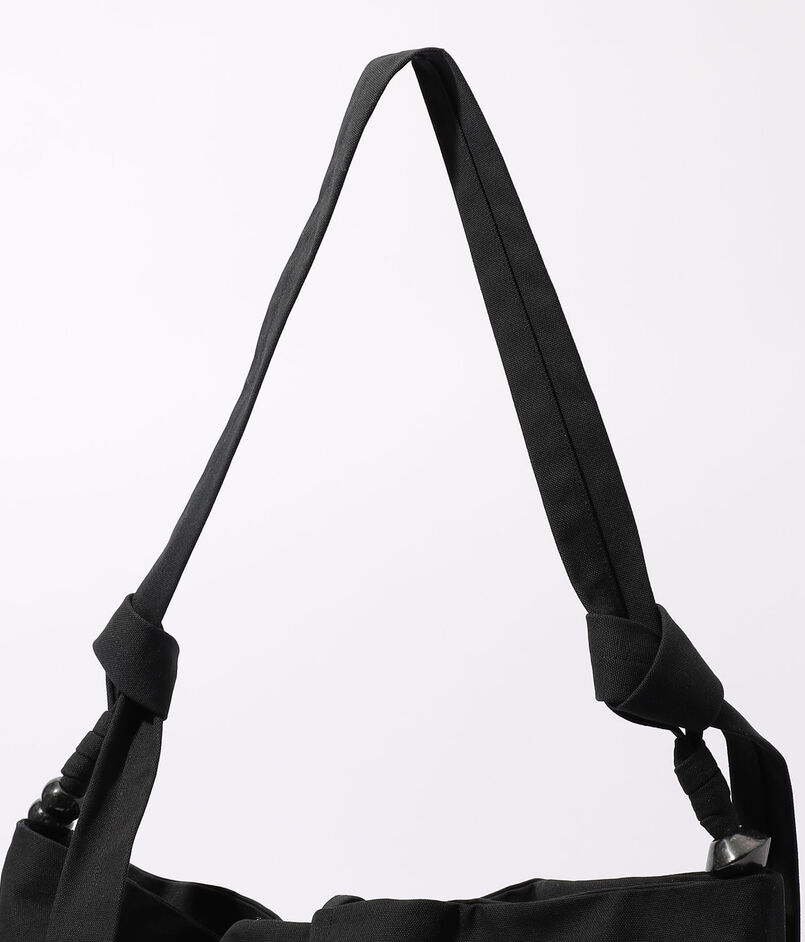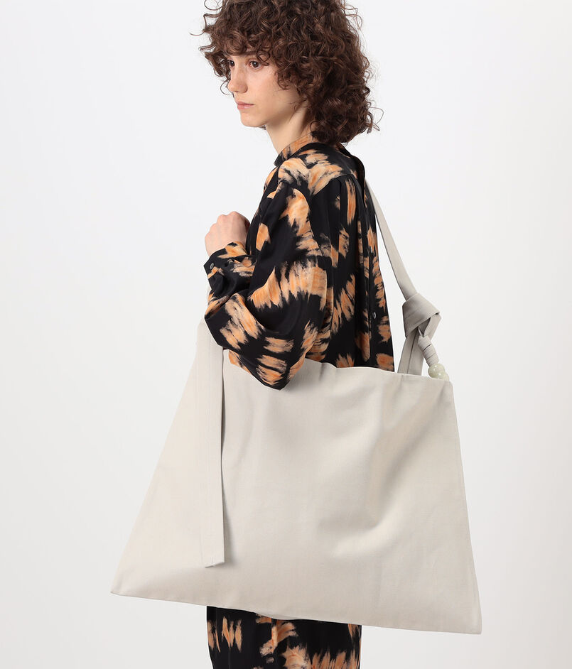 動きに合わせて揺れるストラップが特徴のコットン素材のバッグ。