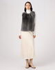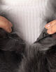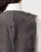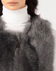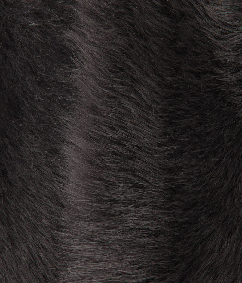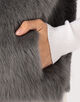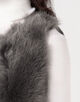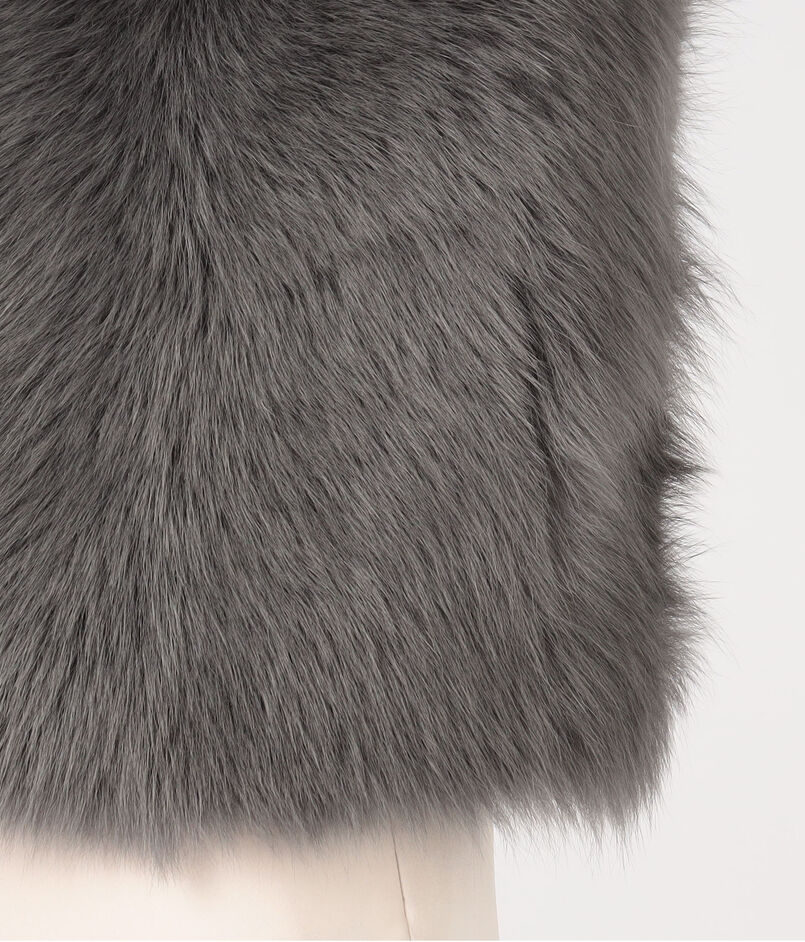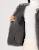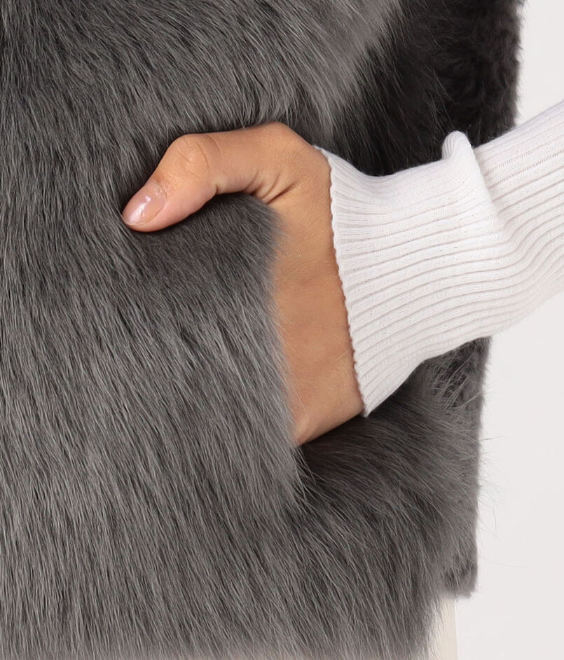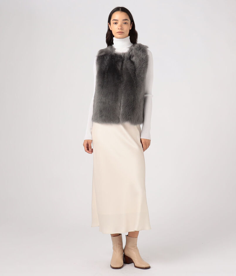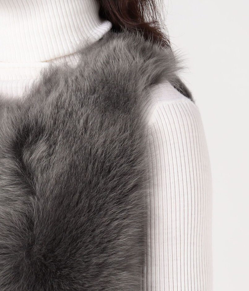 フロントは毛並みが長いトスカーナラムスキン、バックには対照的な毛並みが短いフェザー仕様のシンプルなジレ。