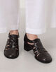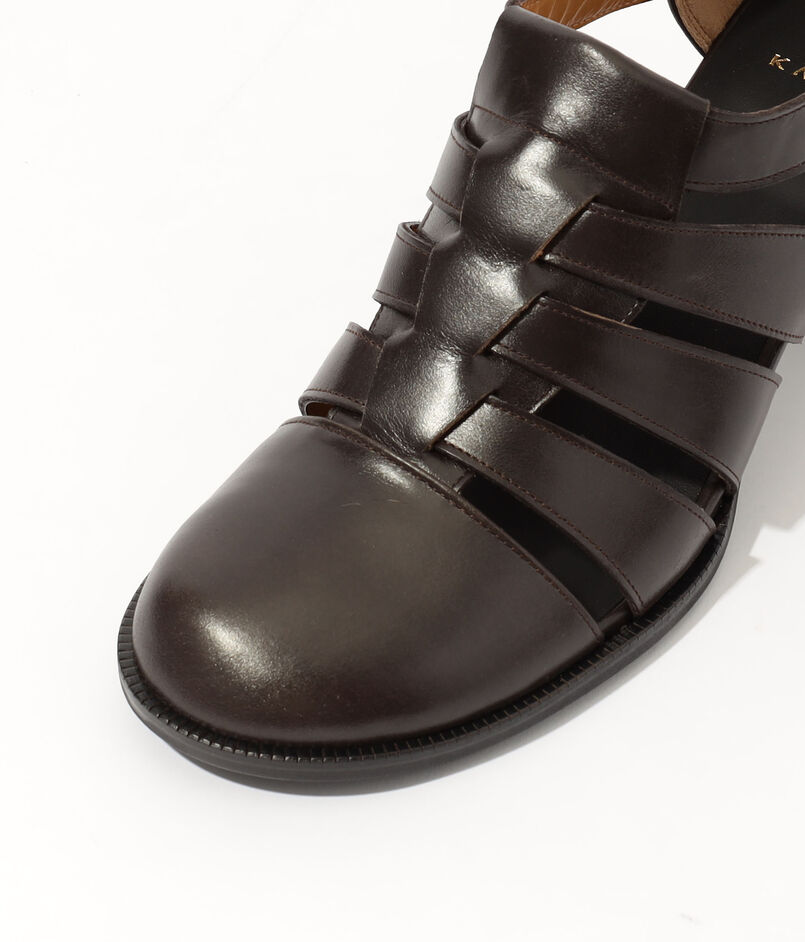ストレートチップ型のトウキャップとサイドから見た時にヒールとS字型ラインを描くヒールキャップがポイントです。