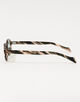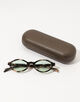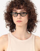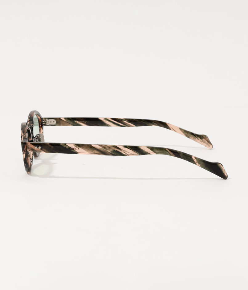 ややスクエア寄りのウェリントンシェイプに、エッジの効いたラインと柔らかな曲線が共存する、独創的なデザインに仕上げられています。