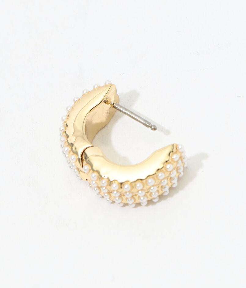 小さなパールがフープ全体に細やかにあしらわれたピアス。