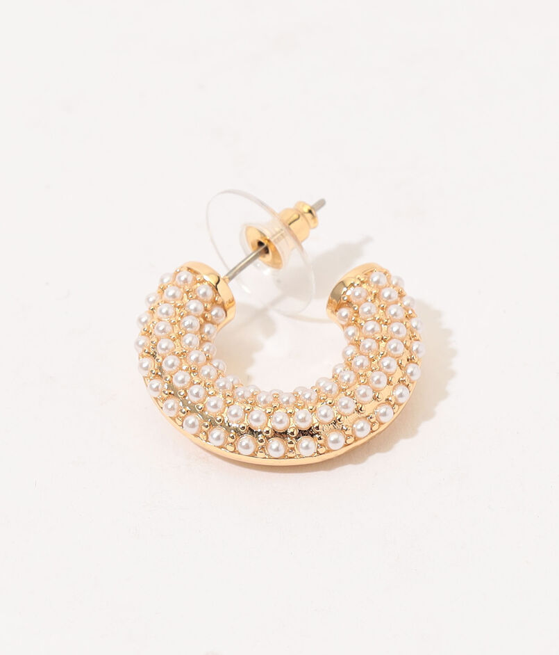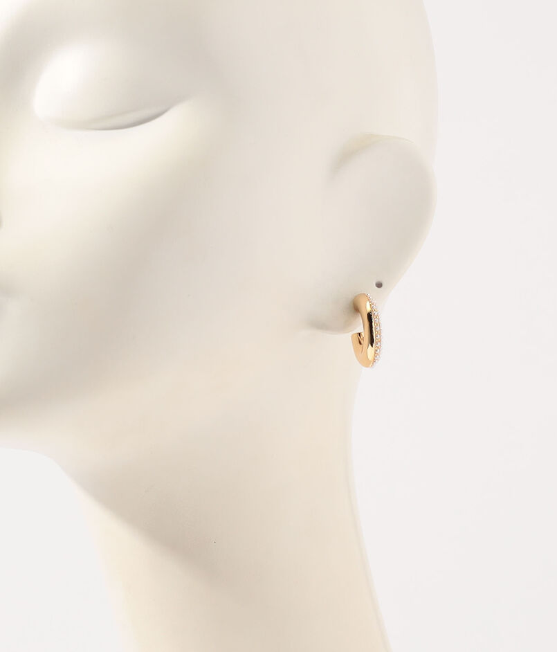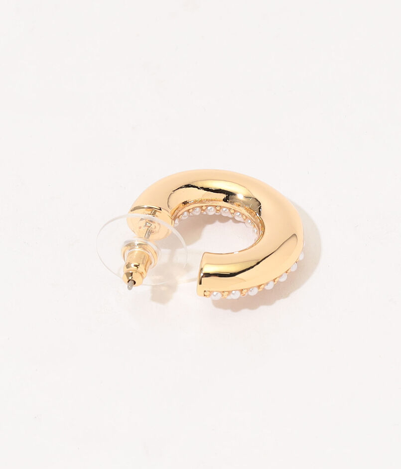 ゴールドのフープにパールを細かくあしらったデザインのピアス。