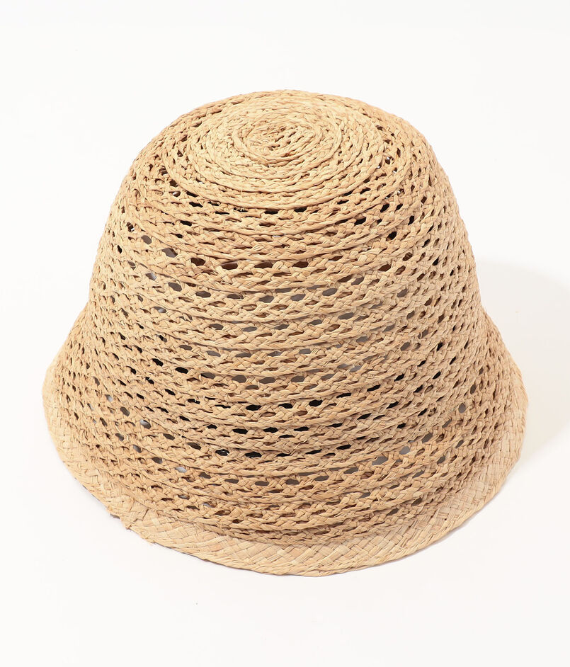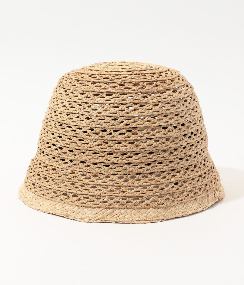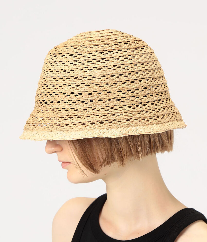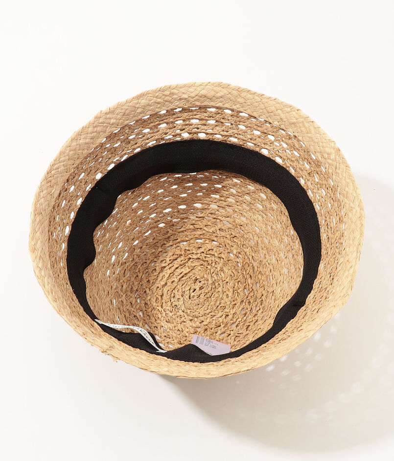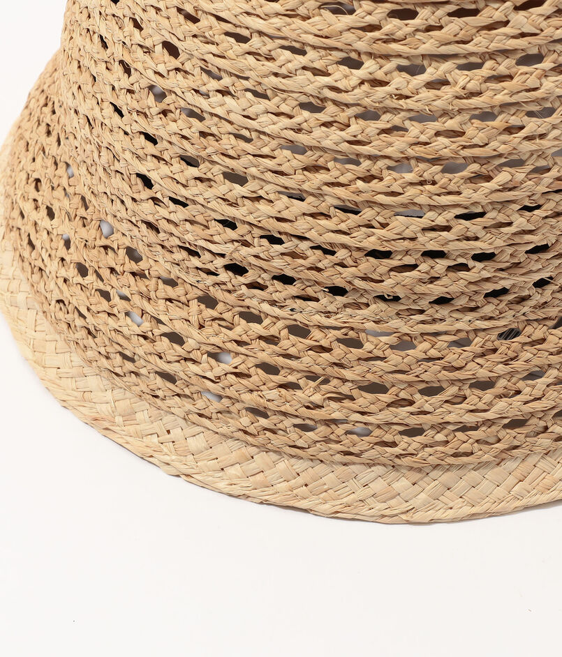 硬質感のあるラフィア透かし編みブレードのメトロハット。