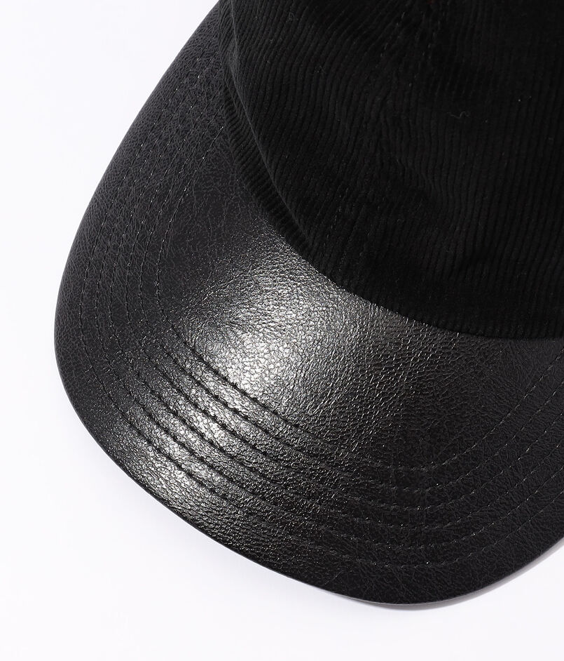 コットンコーデュロイのクラウンにシンセティックレザーのバイザーを組み合わせたキャップ。