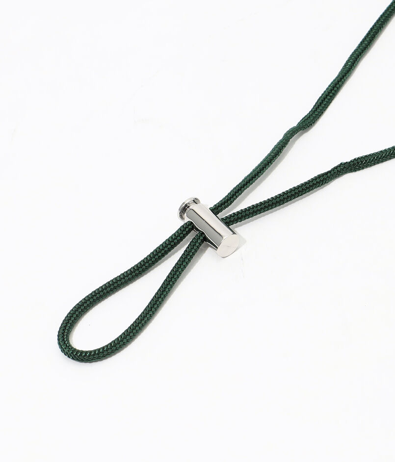 締めた状態でも着脱しやすいラバーのストラップにメタルストッパーが付き、丸めて携帯も可能なパッカブルタイプです。