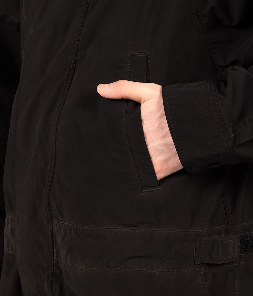 またそれぞれのパーツを二層に仕⽴てにすることで保温性が⾼まり、適度な重さによる落ち感が⽣まれます。