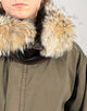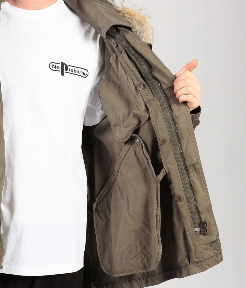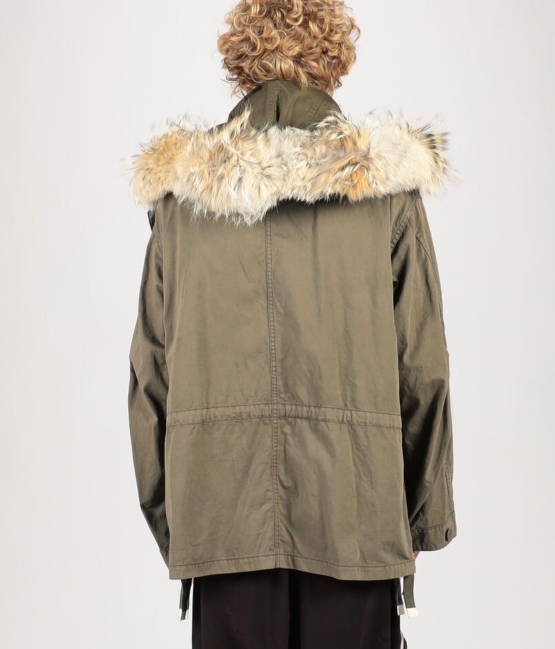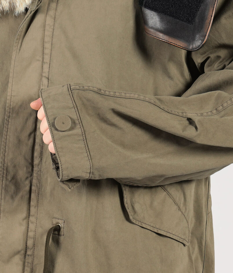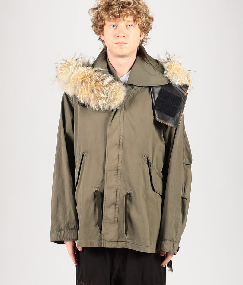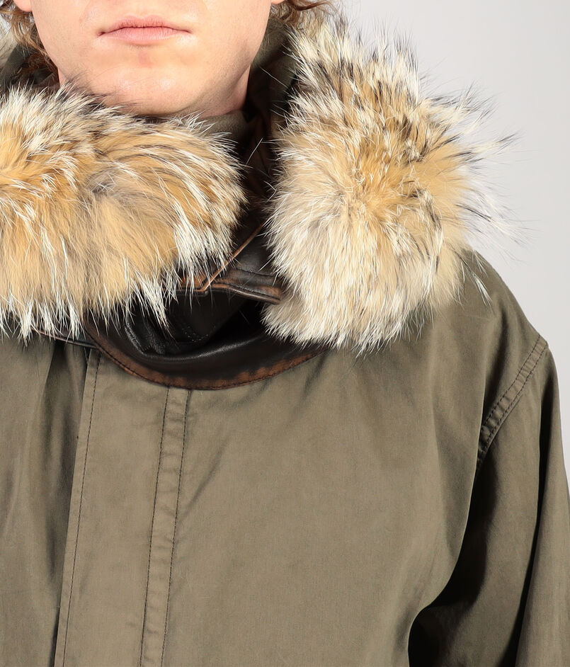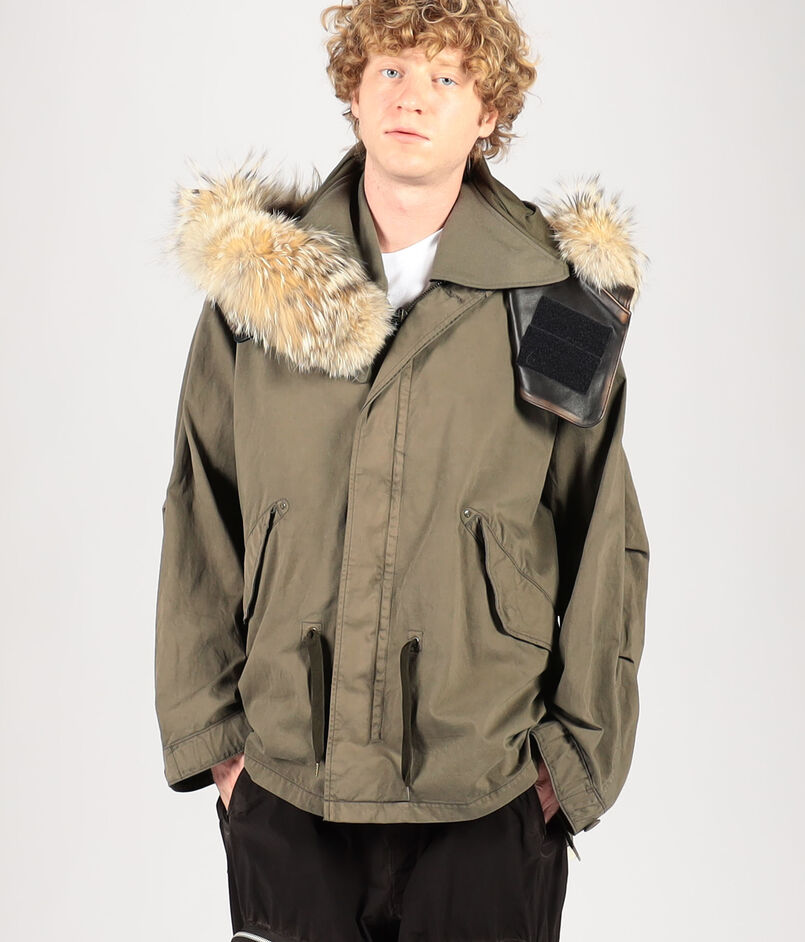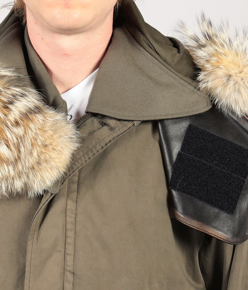 取り外し可能な、薄くて軽い特別仕様の採用したレザーを採用したフードと、上質で自然な風合いを添えるコヨーテファーが、美しいミリタリーウェアを仕上げます。