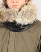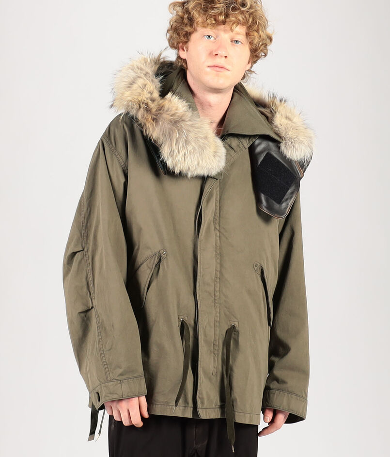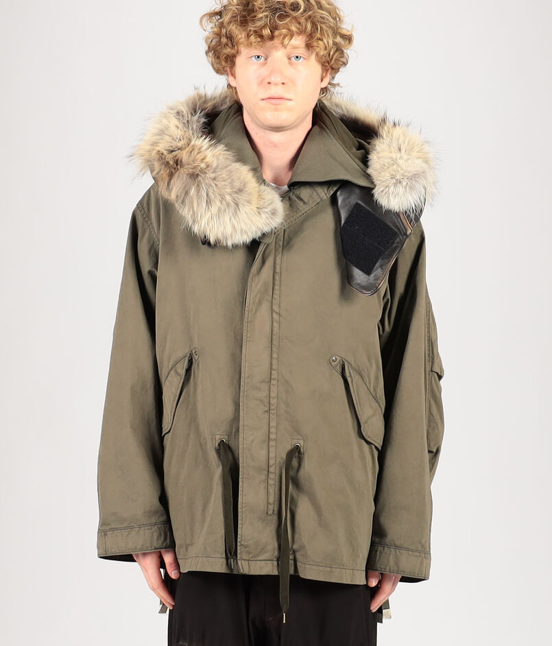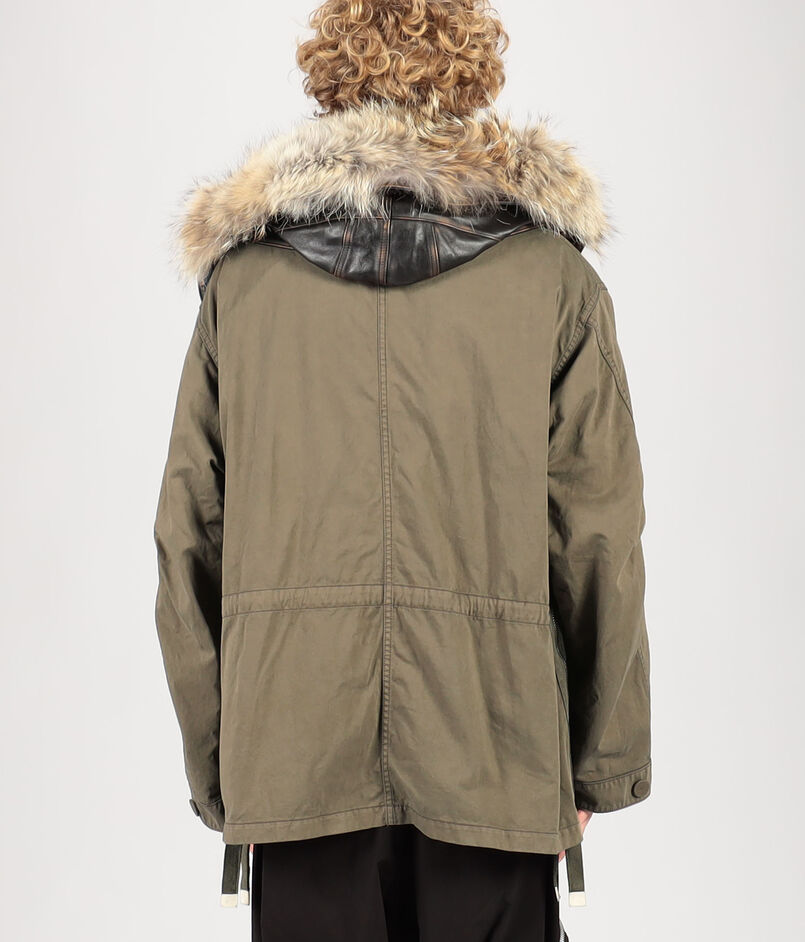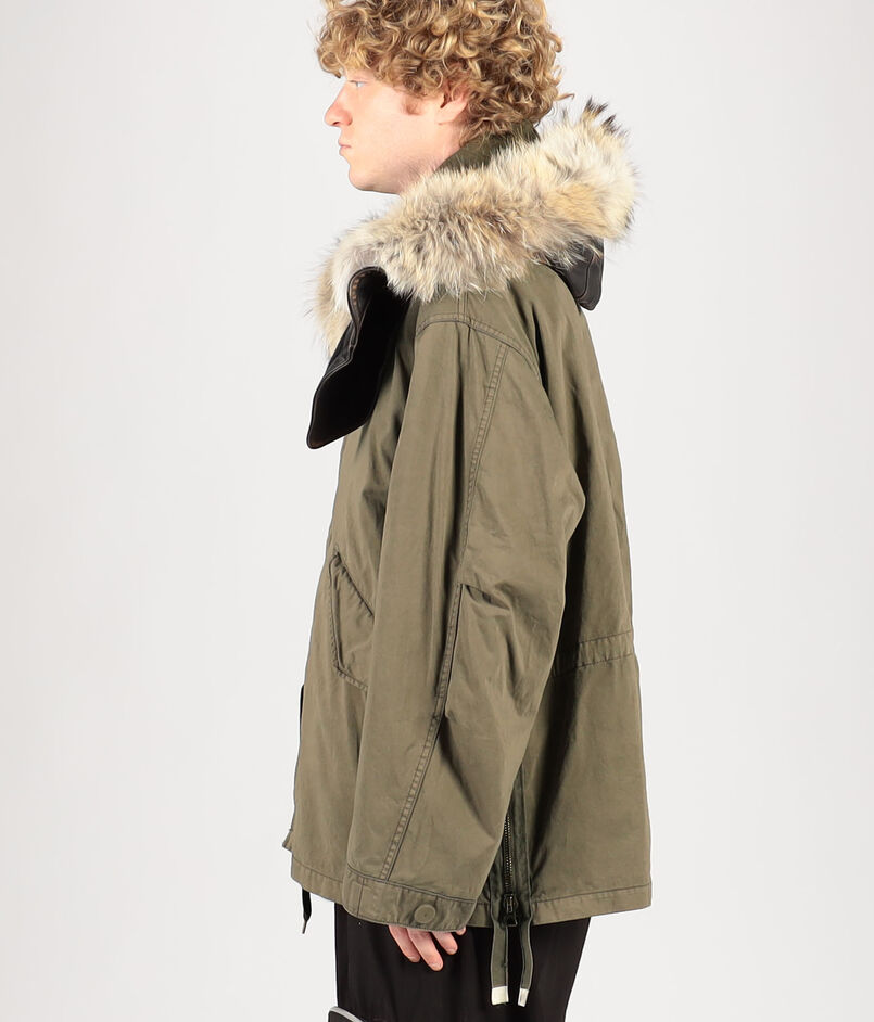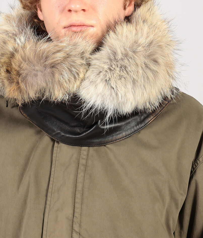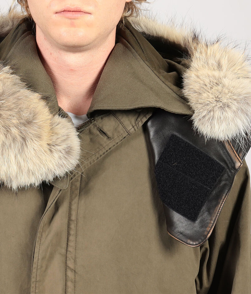 取り外し可能な、薄くて軽い特別仕様の採用したレザーを採用したフードと、上質で自然な風合いを添えるコヨーテファーが、美しいミリタリーウェアを仕上げます。