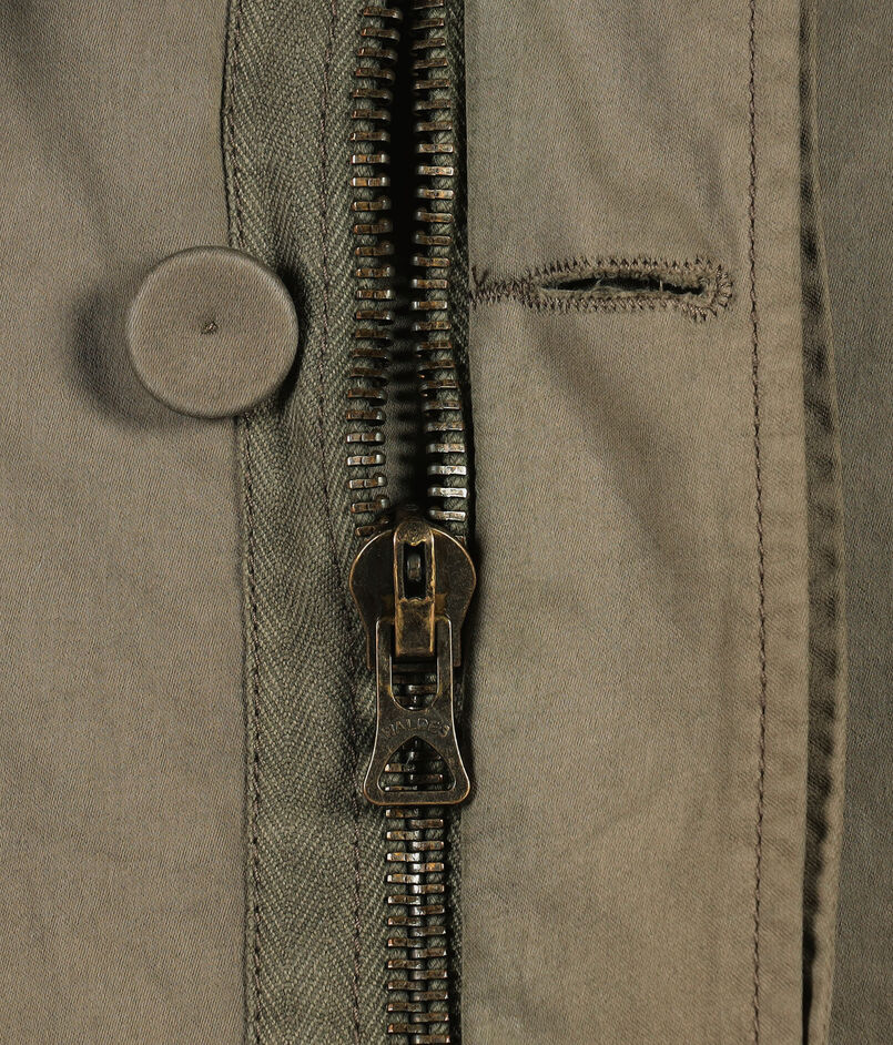 こだわりのある独特の風合いと奥行きのある「カーキ」色合いを表現するために、製品染めを二度重ねるという特別な工程を経て生み出されます。